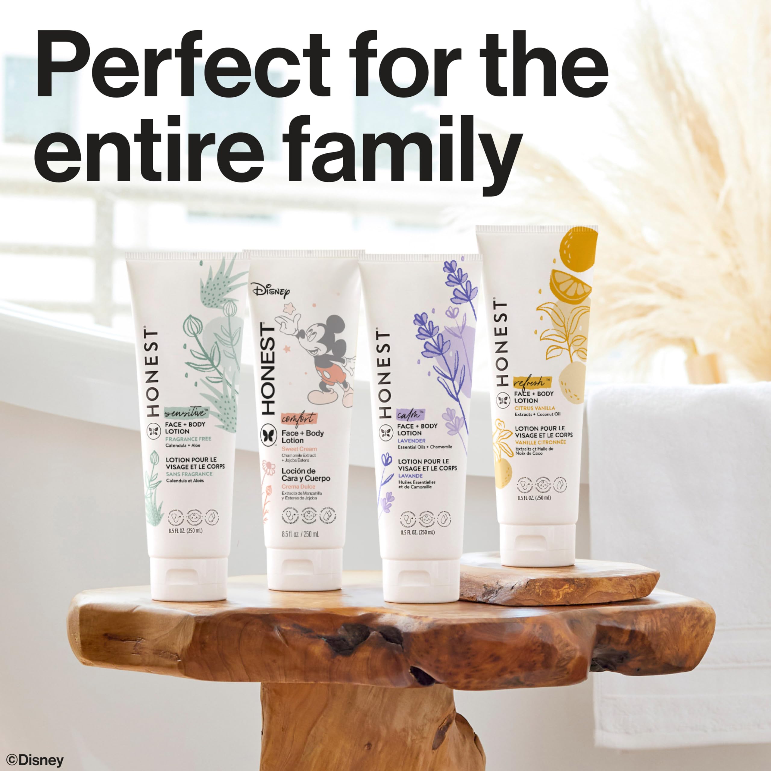 FRESH SCENTS: Available in Lavender for a calming bedtime routine, Citrus Vanilla for a refreshing pick me up, Sweet Cream for enchanting Disney moments, and Fragrance Free for delicate skin types