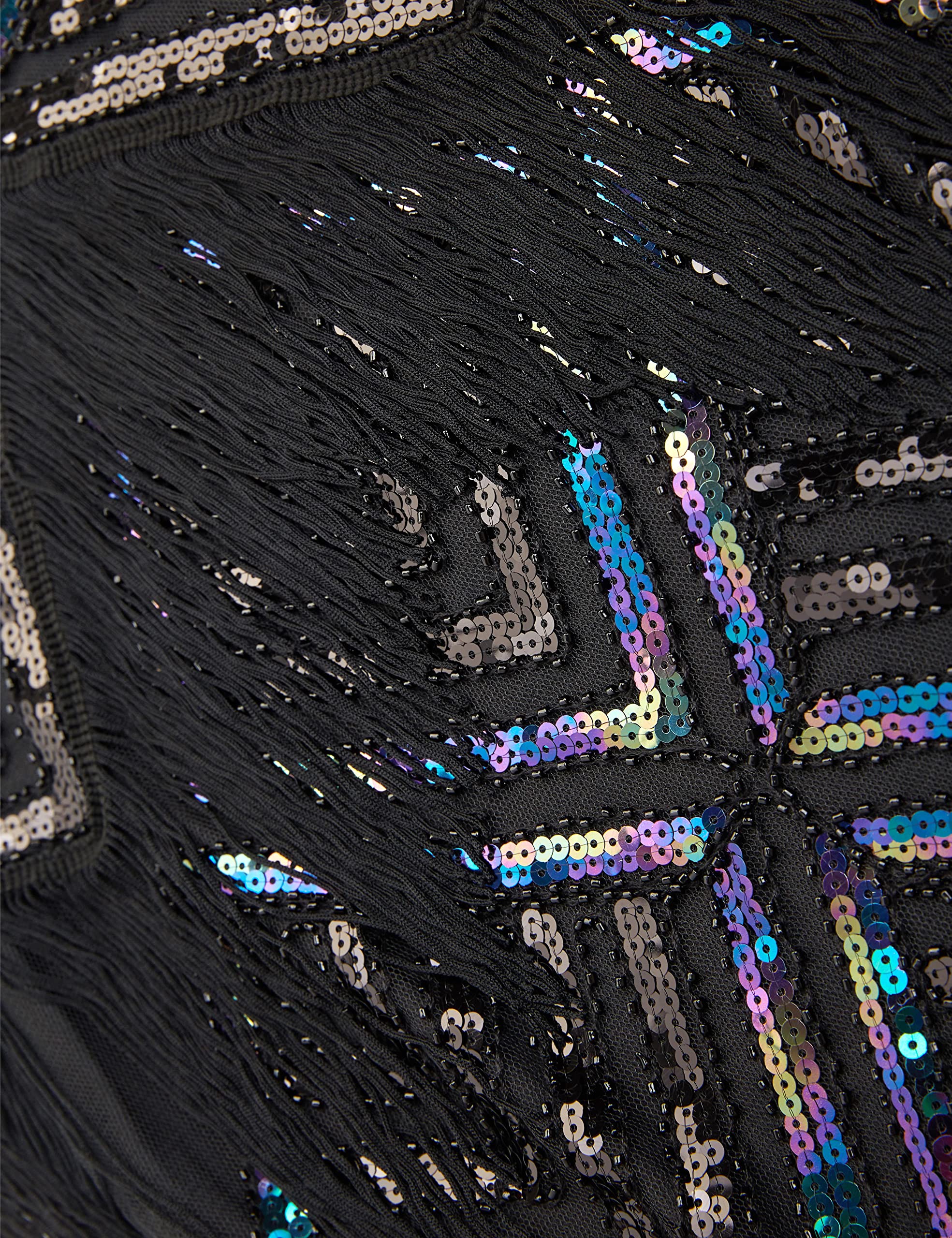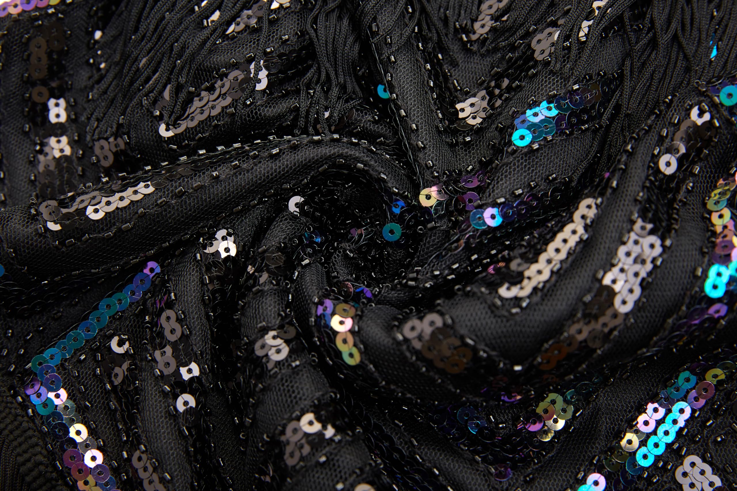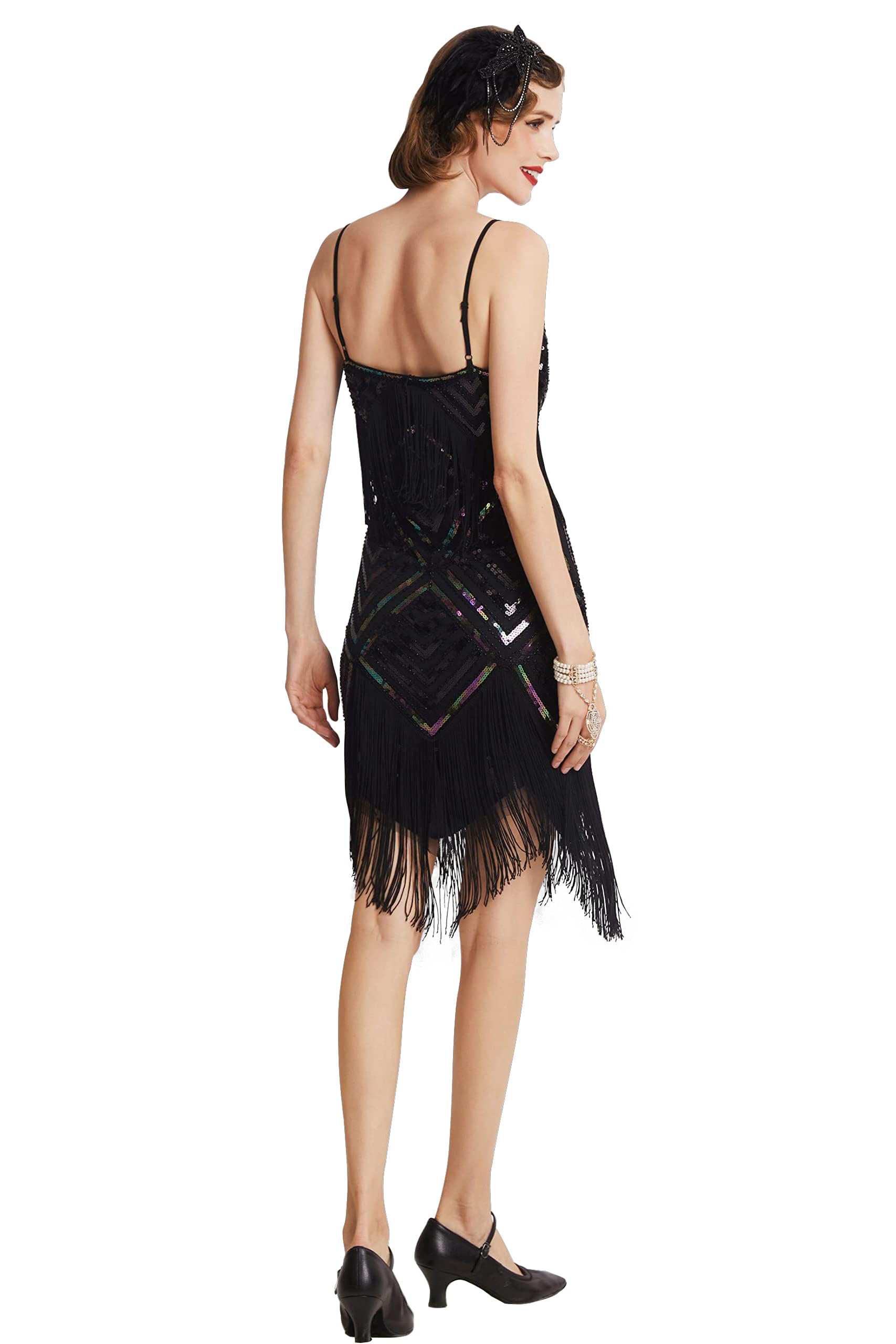 Design: Classic 1920s striped design with sequins and beads accents for a charming pattern. The chest line and bottom hem are trimmed with long tassels to flatter the sexy and glamorous body line.