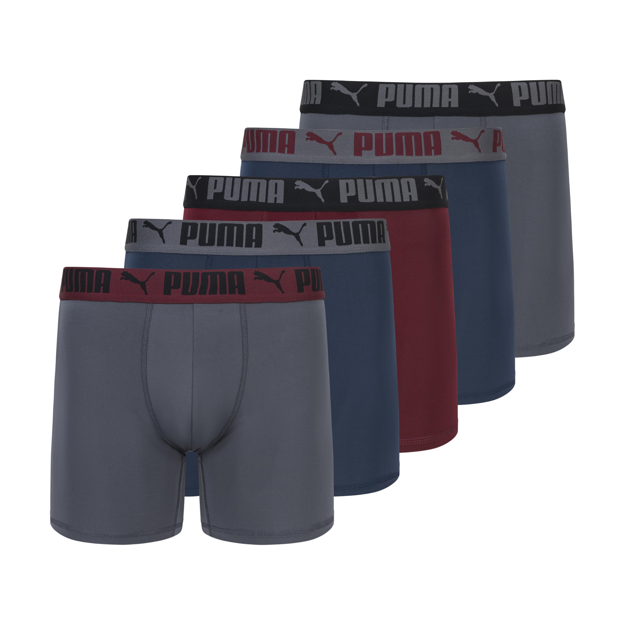 Description The essential 5-Pack Active Stretch Boxer Brief from PUMA is engineered for working out or just being on the go. An ergonomic design keeps these boxer briefs in place and on high performance. We created these briefs with moisture wicking fabric, so you can experience cool comfort anytime, anywhere. Stretch fabric moves with you, and the comfort waistband and flatlock seams team up for a smooth ride. And yes, we've gathered this favorite boxer brief into a 5-pack to ensure you always have a wear-it-wash-it rotation at hand.