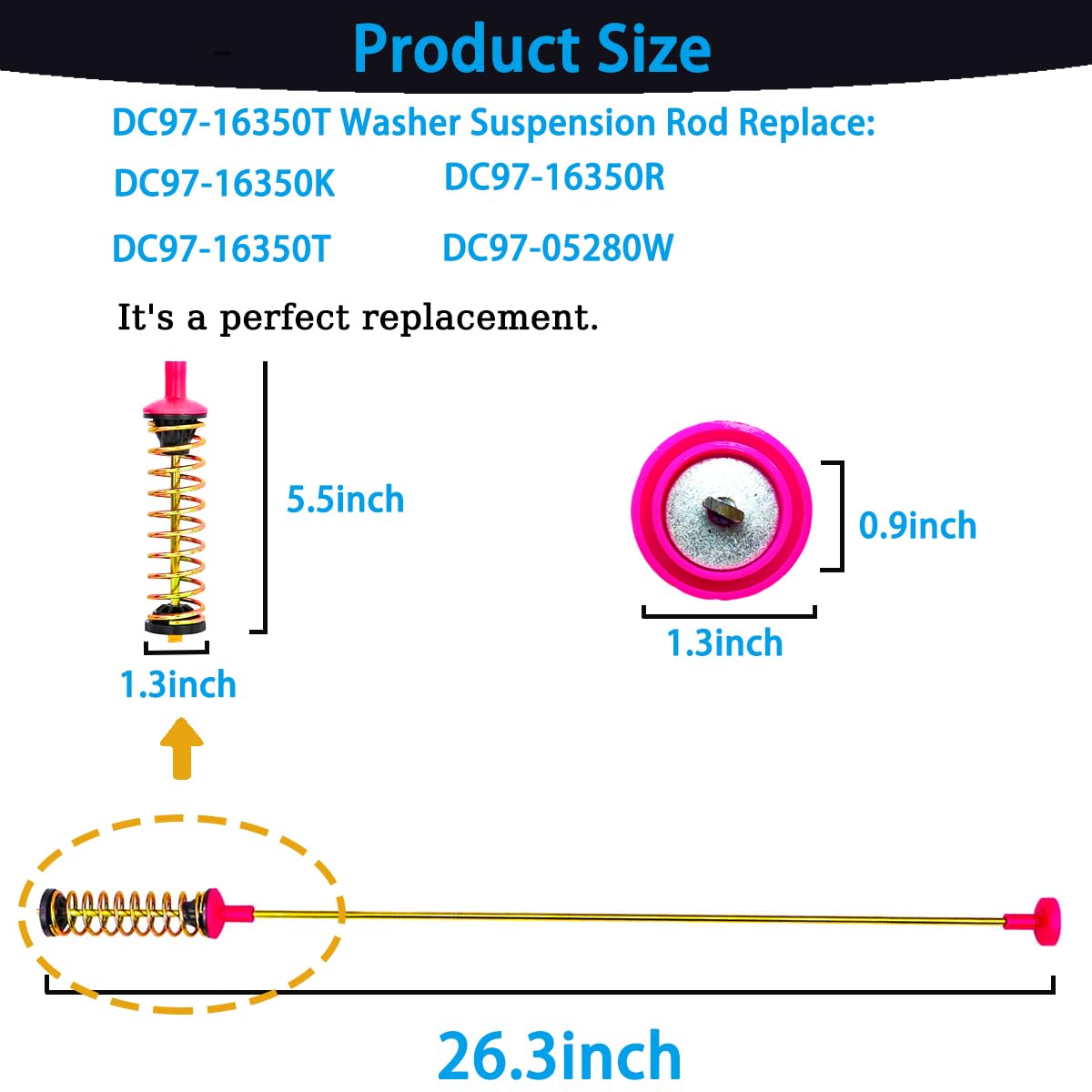 OUR ADVANTAGE: DC97-16350T DC97-05280W Washer Suspension Rods are made of stainless steel material, which prevents rusting and is tough. Stabilizing the washer, the Suspension Rods themselves can effectively prevent deformation and are not easy to break, thus prolonging the service life of the Suspension Rods.