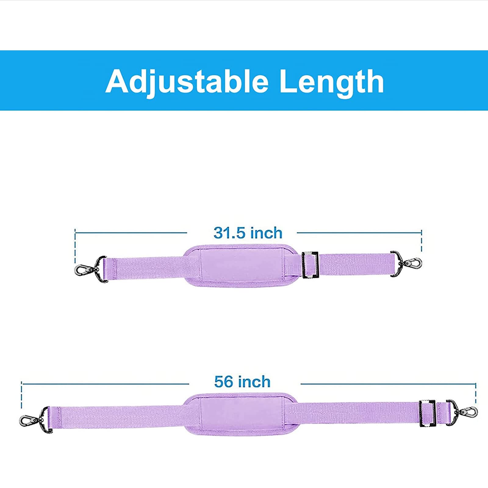The comfort padded shoulder strap can be adjusted between 31.5 inch to 56 inch (80cm to 142 cm) in length, 1.5 inch in width. The easy adjustment in length allows for the perfect fit.