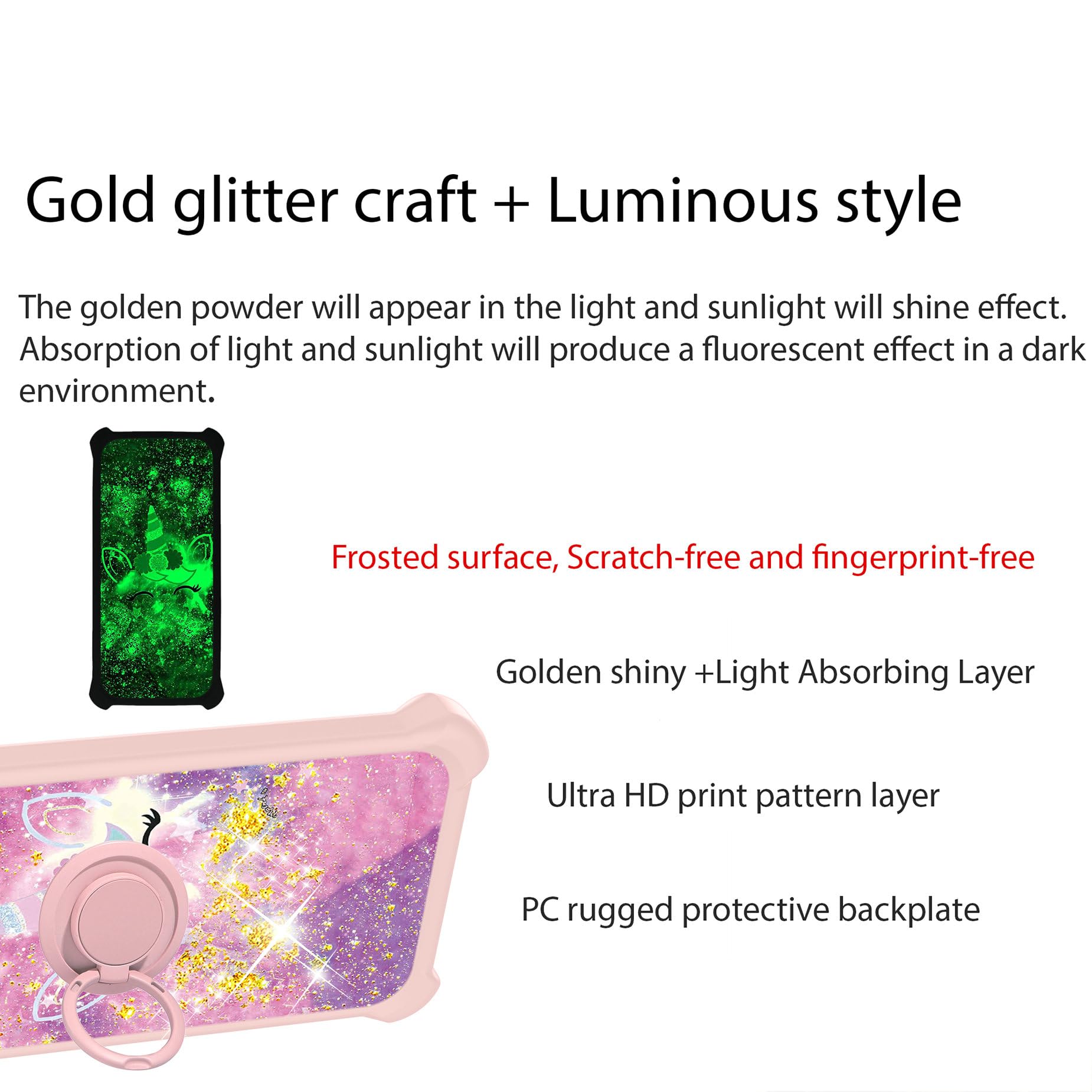 Case Compatible with OUKITEL C36 C35 Phone Case Cover [with Tempered Glass Screen Protector][Ring Support][Gold Glitter+Luminous] JSF-DJS