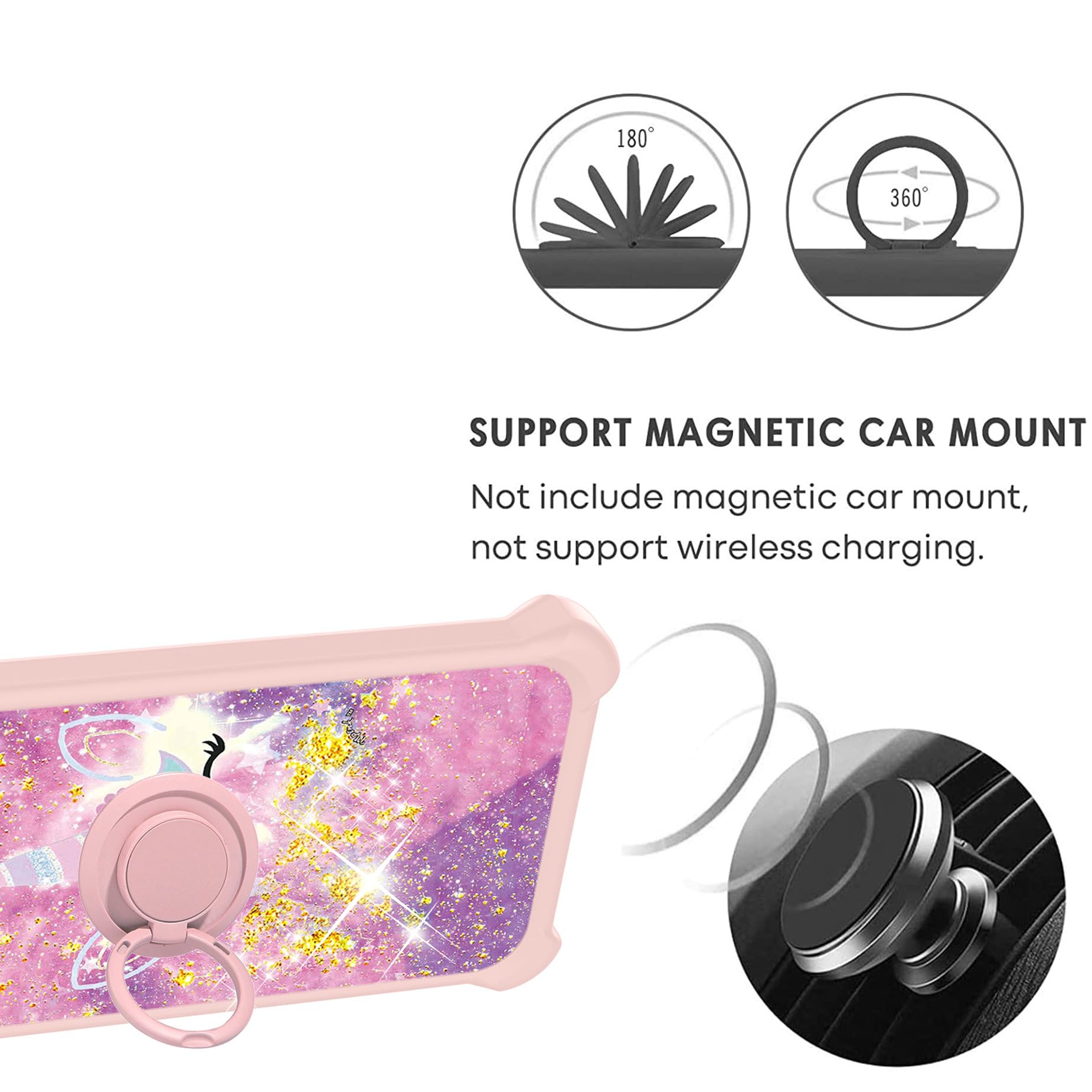 Adhesive metal finger ring support [you can choose to stick to Case, or separate use], 360 degree rotation + car bracket magnetic suction