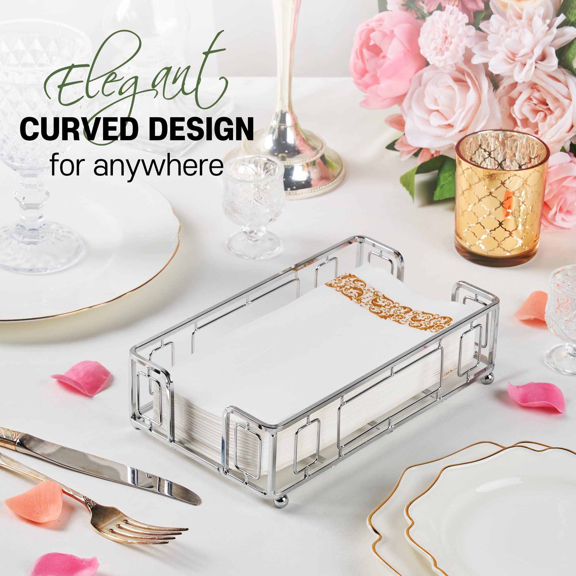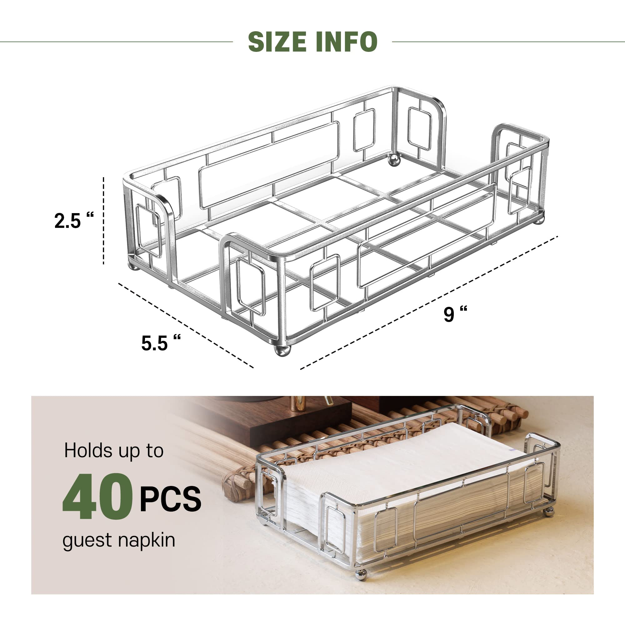 【Perfect Size Hand Towels Holder】 : guest towels holder for kitchen, Bathroom, welcoming guests measures 5.5 x 9 x 2.5 inches and is perfect for keeping a stack of standard sized napkins organized. It occupies a small footprint on your table while accommodating a variety of napkins including paper napkins, cloth napkins, tissues and more