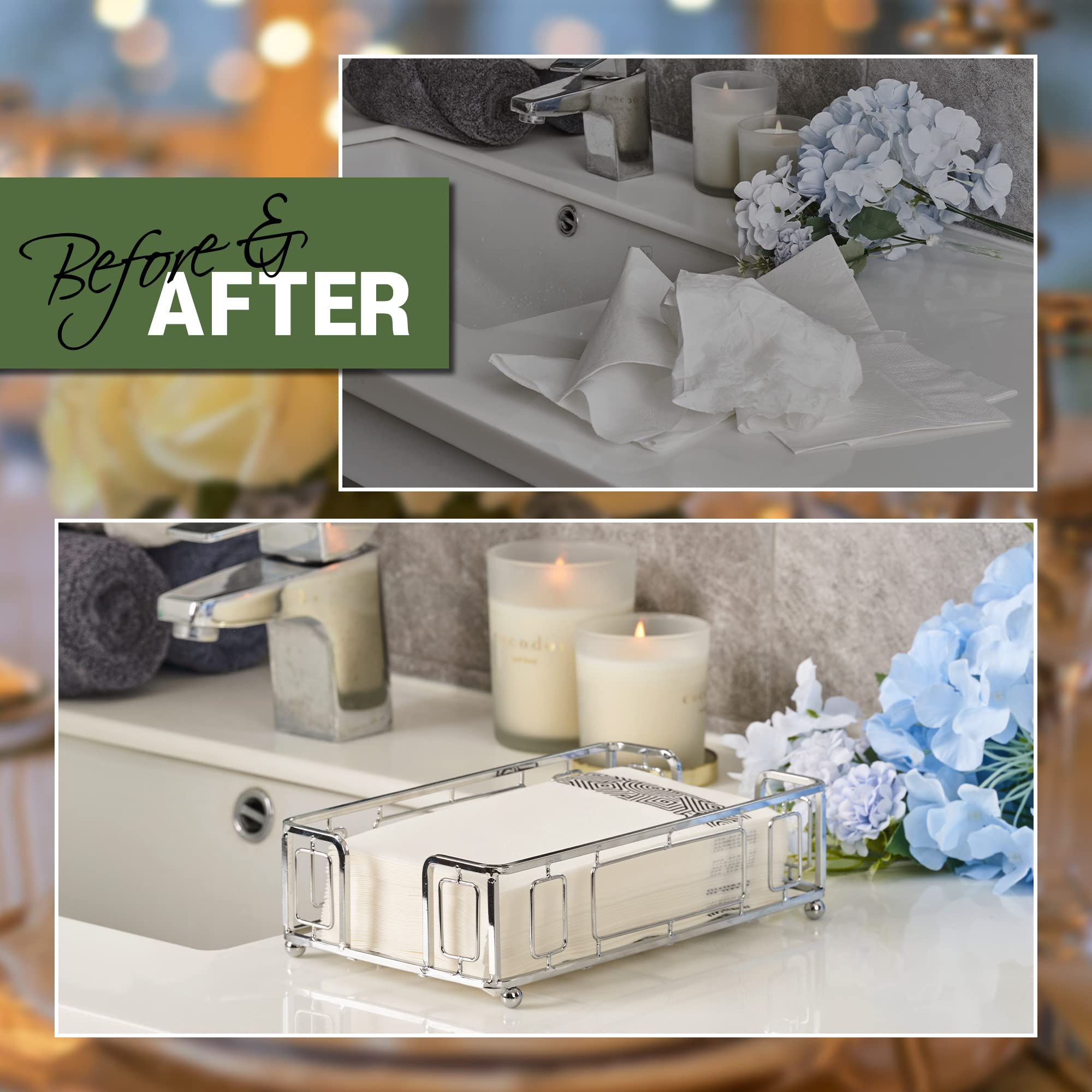 【Multipurpose Functionality】 Use this napkin holder bathroom to store guest napkins disposable bathroom, keeping them neatly arranged and always accessible for visitors in any bathroom setting.