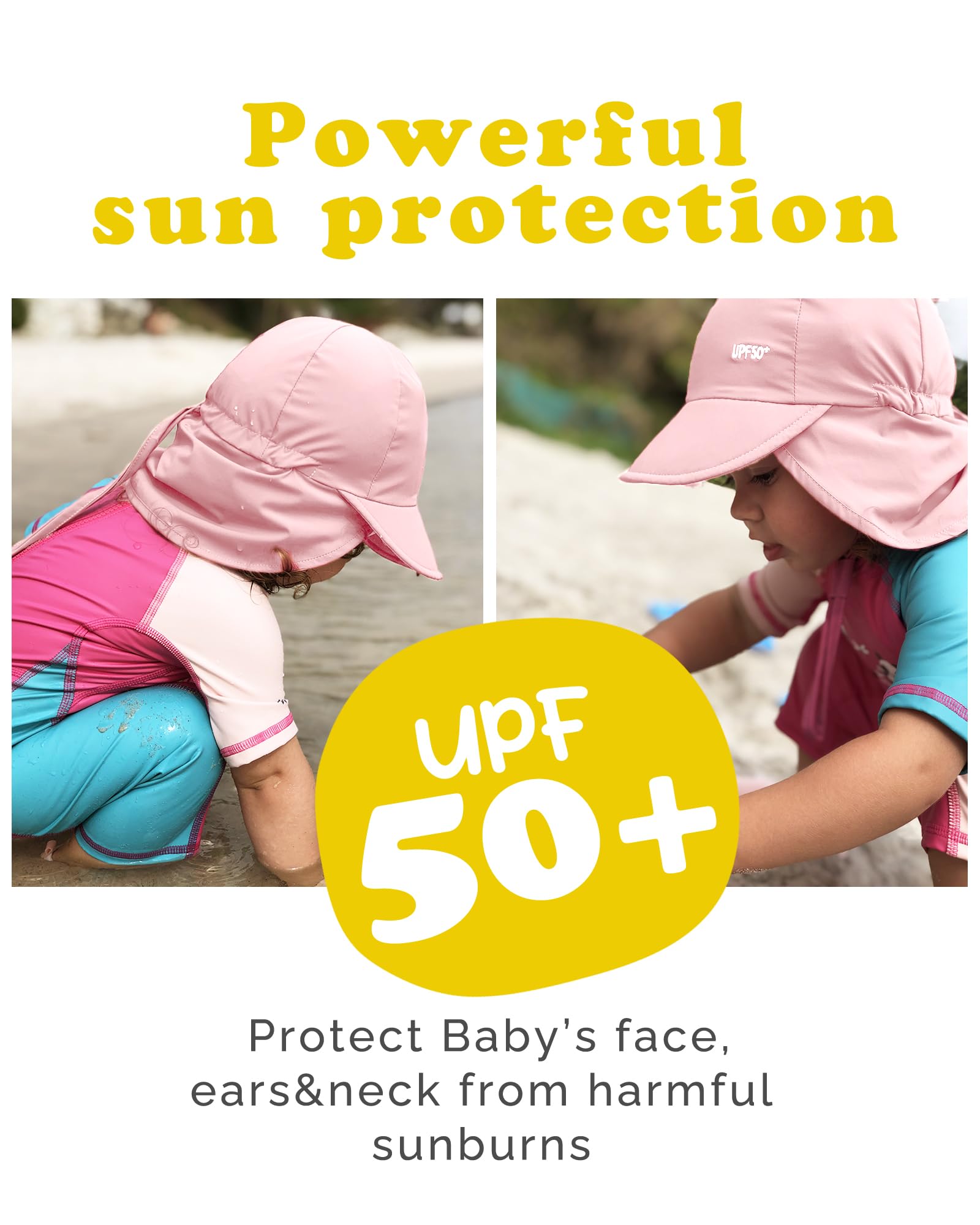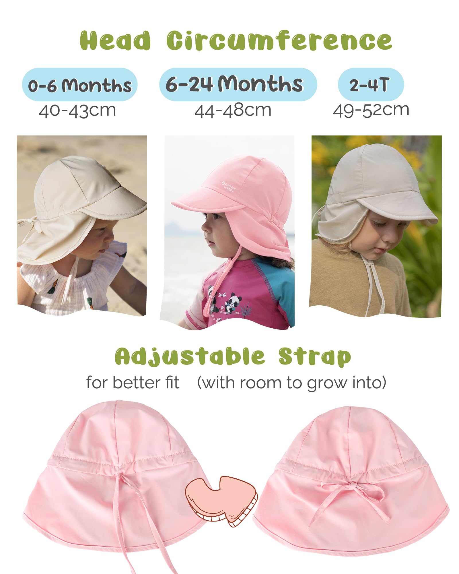 UV protection: The baby sun hat has wide brim, UPF50+protection, and has a large coverage of the neck;The unisex baby hat can block UV at any time to protect your baby's face, neck, eyes from sun burns