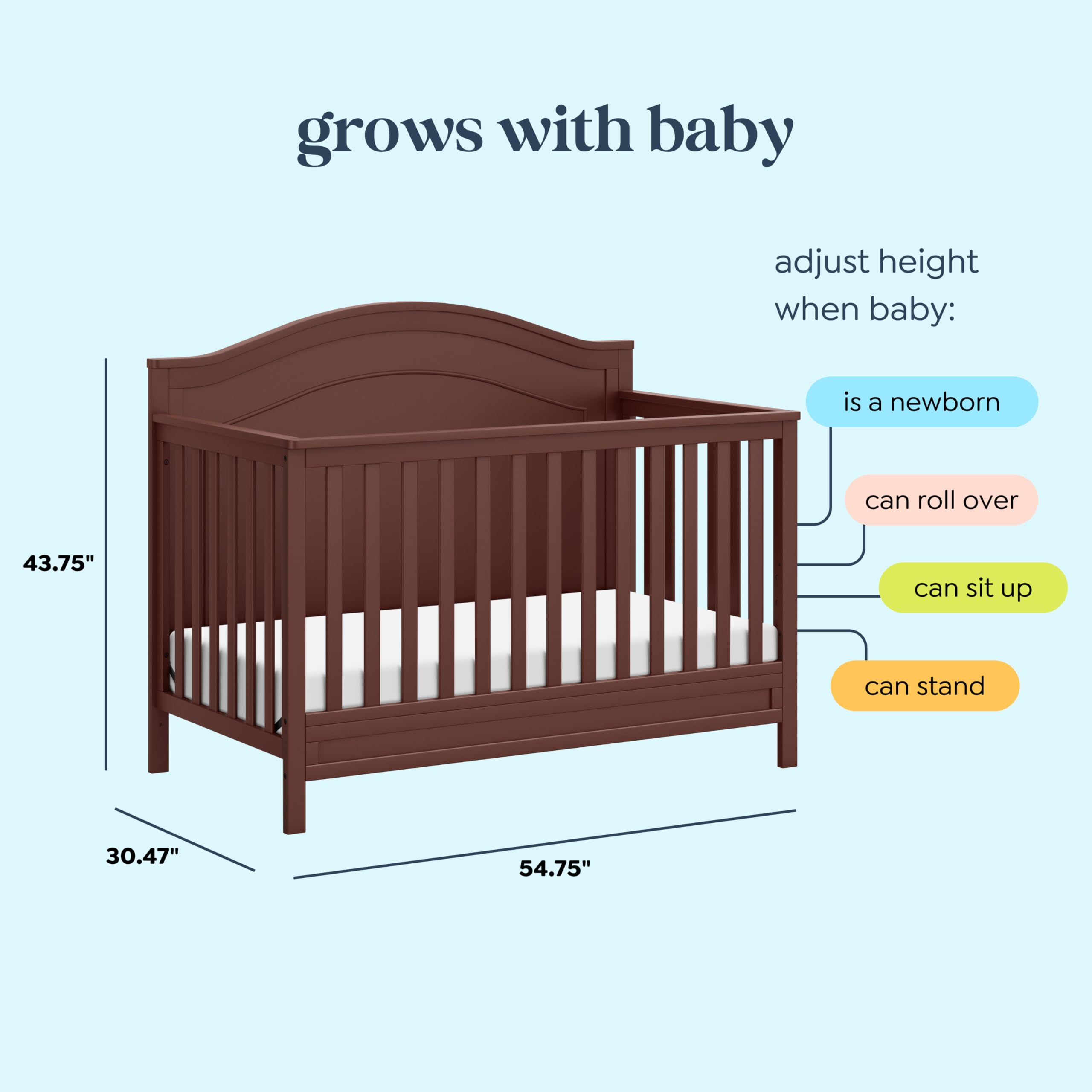 Adjustable Heights for Your Comfort: Featuring four adjustable mattress heights, our 4-in-1 baby crib grows with your baby, making it easier to reach newborns and adjust as they age. Comfort meets convenience, giving parents peace of mind at every stage.