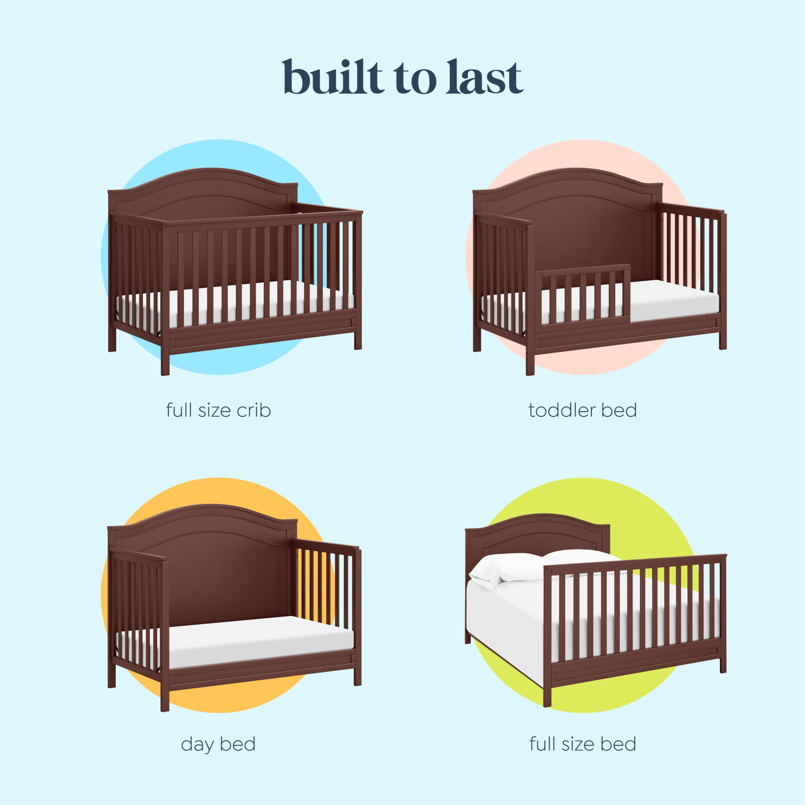 daVinci 4-in-1 Convertible Crib that Grows with the Baby: Transitions from baby crib to toddler bed, daybed, and full-size bed as your little one grows. Easy-to-follow instructions for hassle-free assembly, helping you create lasting memories from day one. (Toddler kit No. M12599, Full-size conversion kit No. M5789 and full-size bunkie board No. M26058B sold separately)