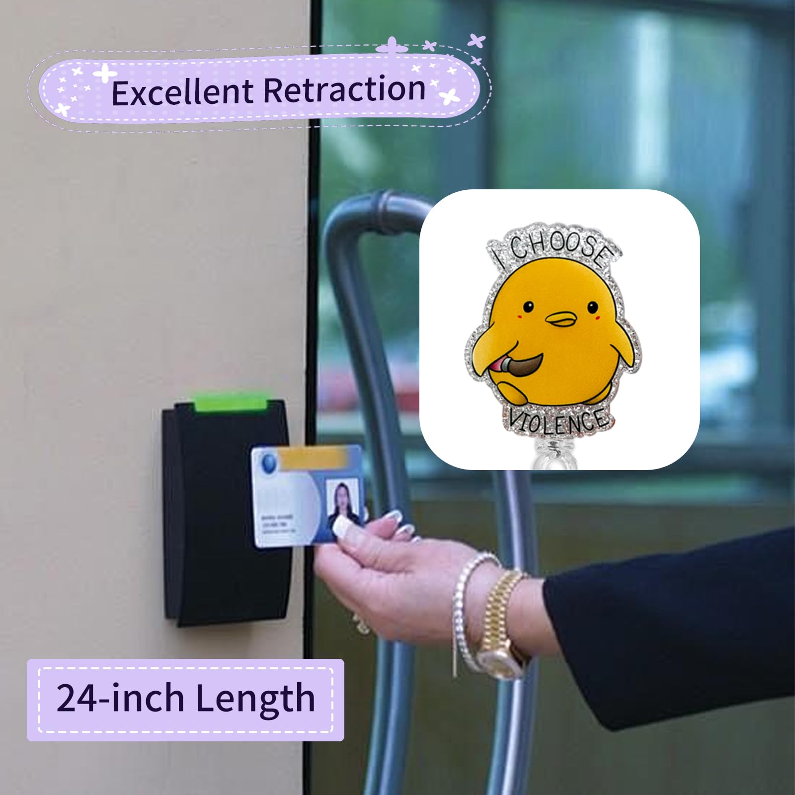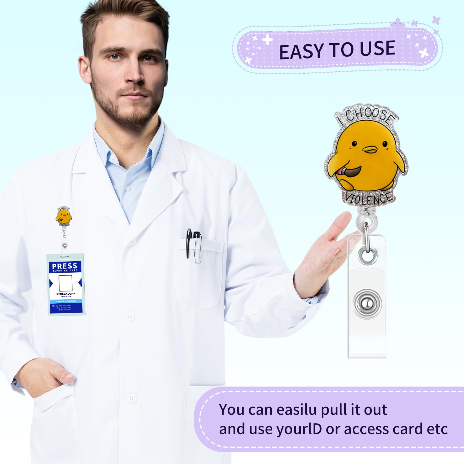 【Material】The design of this nurse badge reel comes with chickens pattern. The Badge Holder Retractable Clip is made of high-quality acrylic, and the rope is mainly made of high-quality nylon material, which is strong and durable. They are lightweight and feature serrated alligator clips that will never drop your ID.