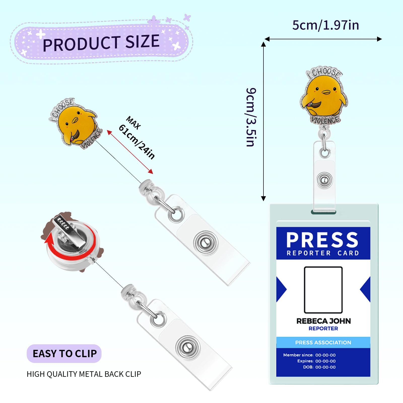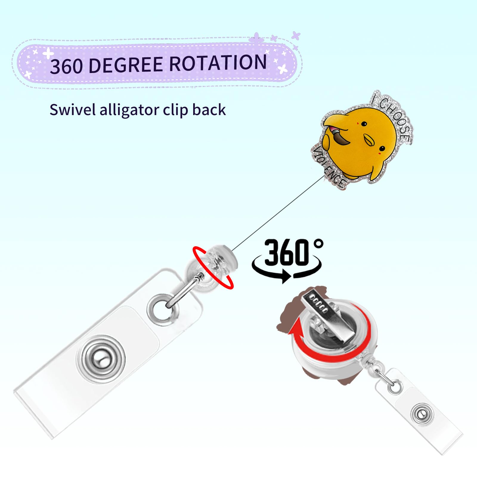 【Safety Attachment】The badge reel comes with a rotating alligator clip that can rotate 360 degrees, this badge reel securely attaches to your clothing, providing a firm grip.