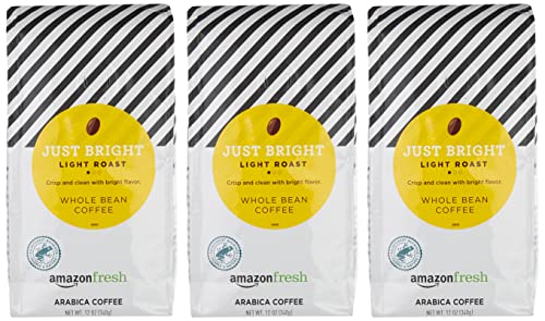 Our AmazonFresh Just Bright light roast whole bean coffee is made with high quality 100% Arabica beans, expertly roasted and immediately packed for freshness. Crisp and clean with nutty caramel notes, it's a mild cup with a smooth finish. Pour yourself a good morning.