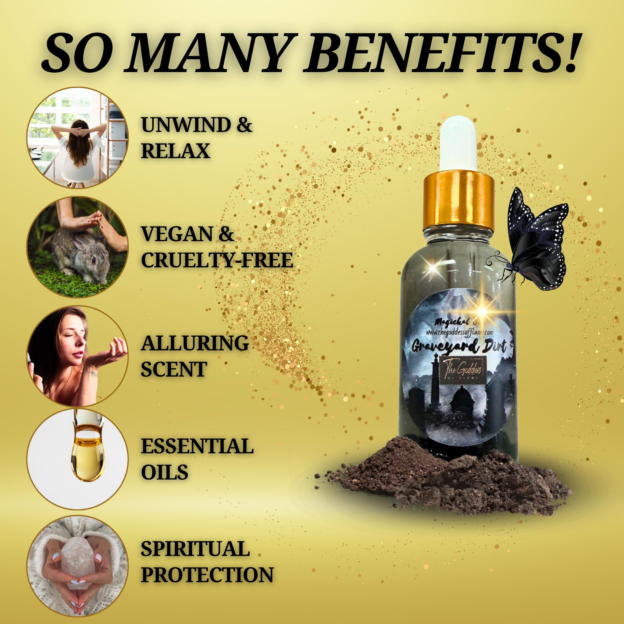⚰️ Graveyard Dirt Ritual Oil – Used for protection, banishing negativity, and ancestral veneration.