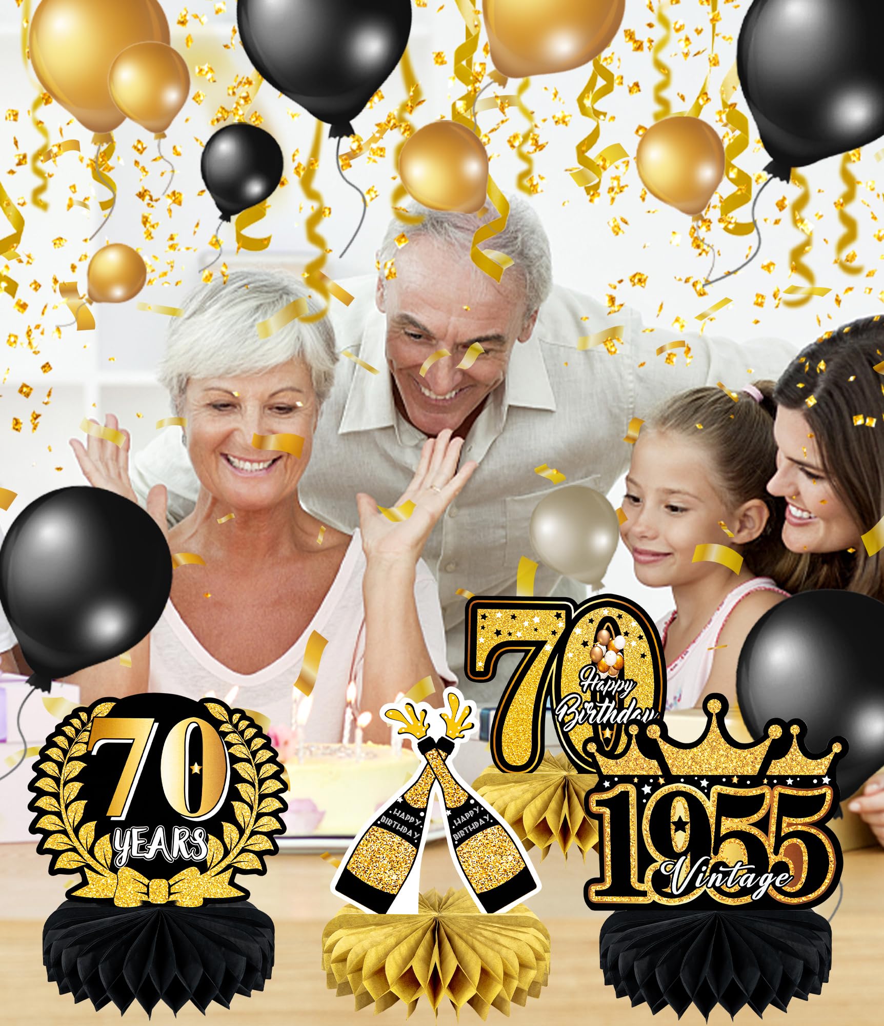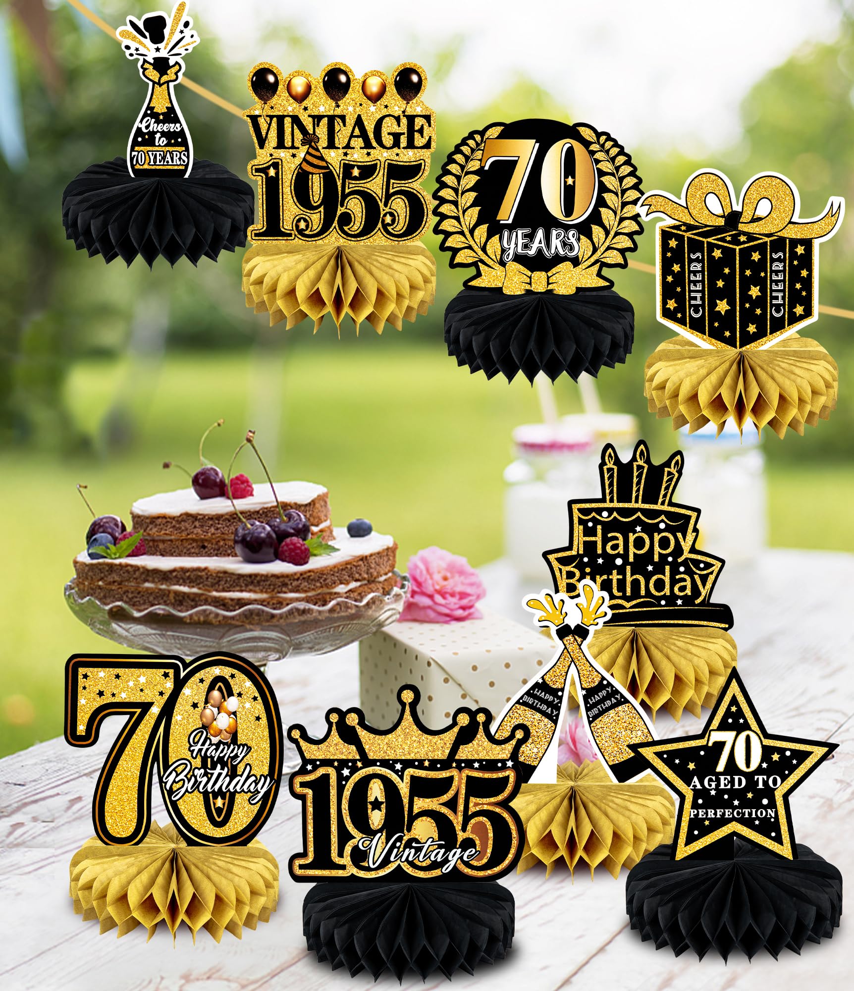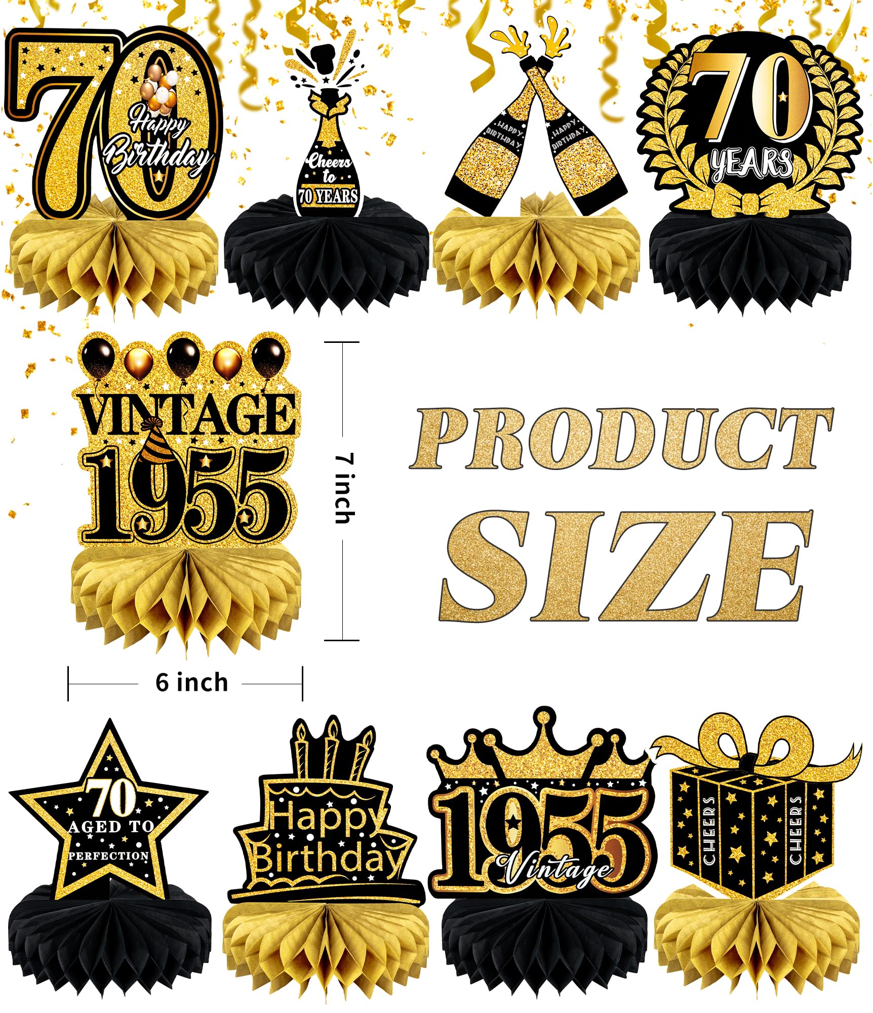 💖70th BIRTHDAY PACKAGE INCLUDES: Our 70 birthday decorations for men women including 9 patterned cardboard and 9 paper honeycombs. These decorations exquisitely designed with interesting birthday elements. It is very suitable as a decoration for your 70th birthday table decorations, you can place it on the table or hang it with a clip