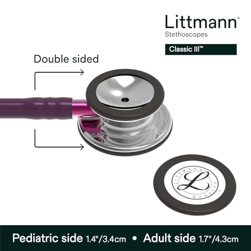 Product Description Love your stethoscope The compact and sensitive Littmann Classic III stethoscope is the perfect instrument for clinicians who monitor and assess children or adults in non-critical environments. Manufactured with strong yet lightweight materials for hours of comfortable use. The 3M™ Littmann® Classic III™ Stethoscope is the latest version of the stethoscope that helps millions of medical professionals achieve their best. The Classic III stethoscope offers high acoustic sensitivity for exceptional performance, plus a versatile two-sided chestpiece with tunable diaphragms. The Classic III stethoscope is used by students and medical professionals alike to identify, listen to, and study heart, lung, and other body sounds for physical assessment, patient monitoring, and diagnosis. Tunable diaphragm technology—a 3M invention—lets clinicians hear different frequency sounds by simply adjusting the pressure on the chestpiece. Hold the chestpiece with light pressure to hear low frequency sounds; press a little more to hear higher frequency sounds. This time-saving feature allows the healthcare provider to focus on the patient, while the non-chill diaphragm provides patient comfort. Headset tension is easily adjusted for head size and comfort by squeezing together or pulling apart the eartubes. Snap-tight, soft-sealing eartips conform to individual ears for an excellent acoustic seal and comfortable fit. Eartips snap firmly onto the ends of the eartubes and, for safety, require a significant effort to remove. Resilient next-generation tubing retains its shape and flexibility even after folding tightly into a pocket. It provides longer stethoscope life due to improved resistance to skin oils and alcohol, and is less likely to pick up stains. Next-generation tubing is not made with natural rubber latex, a benefit to sensitive medical professionals and their patients. And, to play its part in the protection of human health and the environment, the next-generation tubing does not contain phthalate plasticizers. The Classic III stethoscope is made in the USA for consistent quality. It comes complete with large and small soft-sealing eartips, non-chill bell sleeve, and instructions. Put the power of improved listening in your pocket with the Littmann Learning App. This powerful app is designed to help users better recognize benign and pathological heart sounds, murmurs, and lung sounds. It reinforces learning by offering self-directed learning modules directly on your phone. You can download the free Littmann Learning App now from the App Store® or Google Play Store®. *Expanded content is available with a subscription. Manufacturer Contact Information 1-800-228-3957