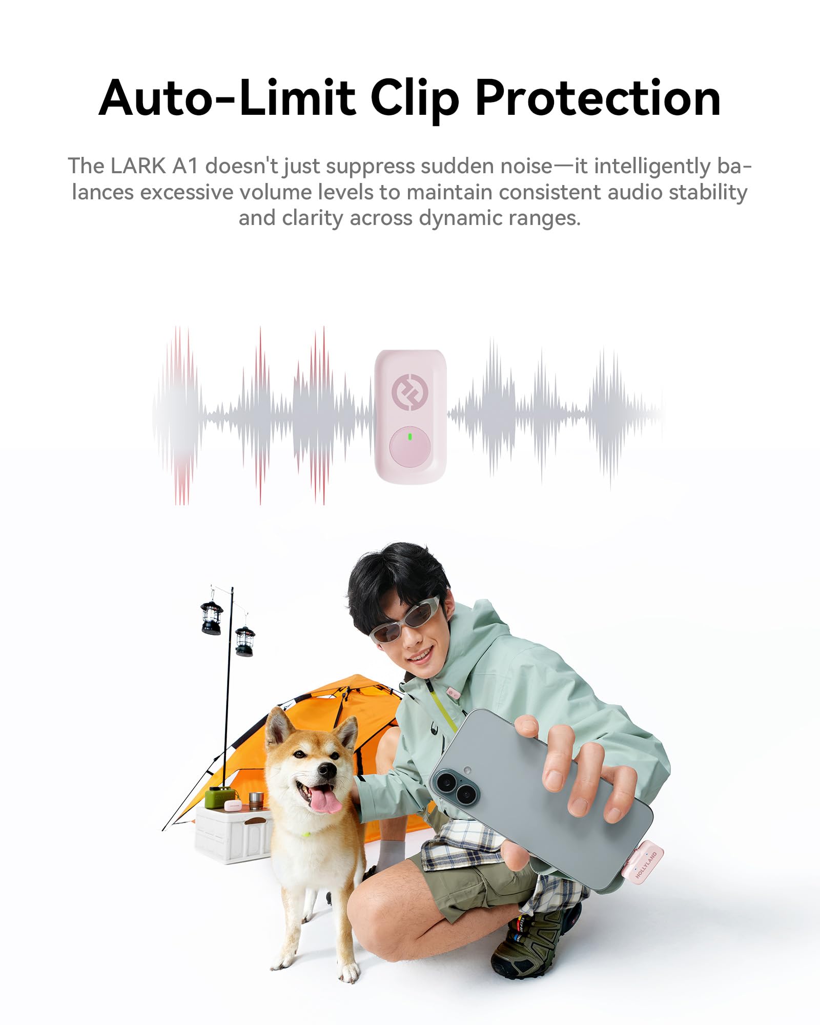 6-Level Gain Control via App: Adjust mic sensitivity from whispers to shouts effortlessly with the LarkSound app—smart mini microphone flexibility for any scenario.