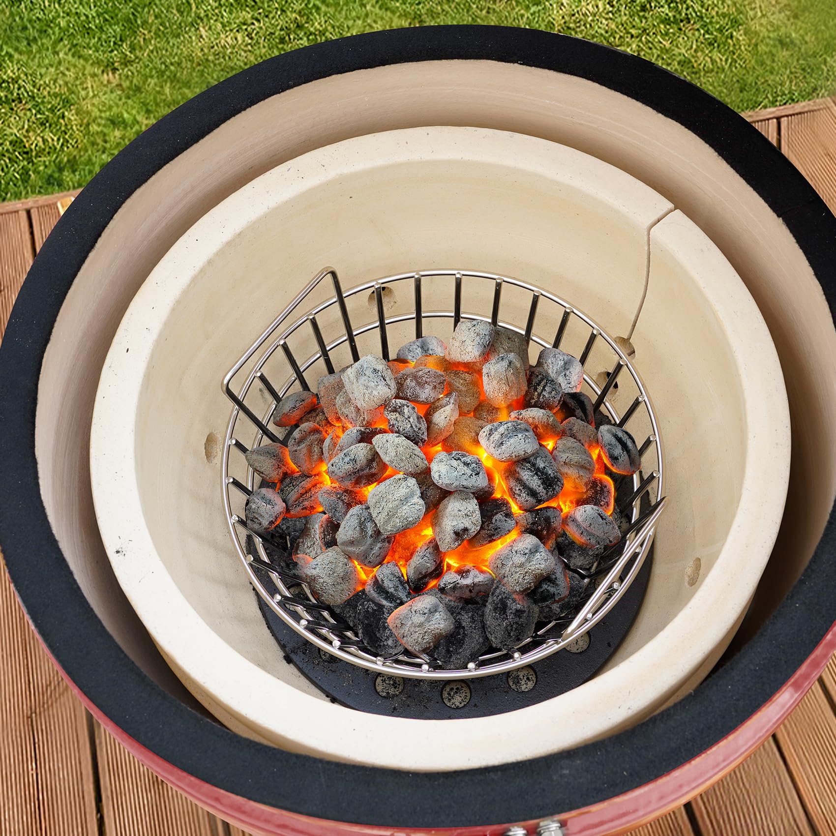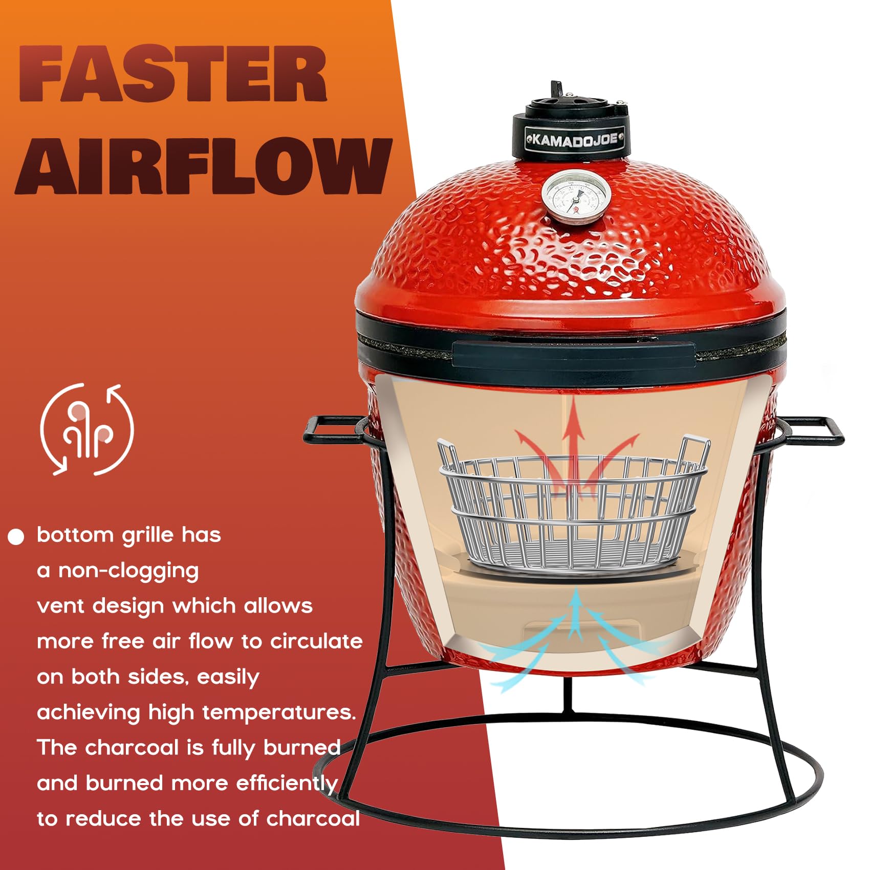 【Faster airflow & time-saving temperature Control】No more clogged air vents design in the bottom grill, the round shape design allows faster airflow to circulate around the sides, you can easily achieve high temperatures. It can also reduce the use of charcoal by burning it more efficiently.