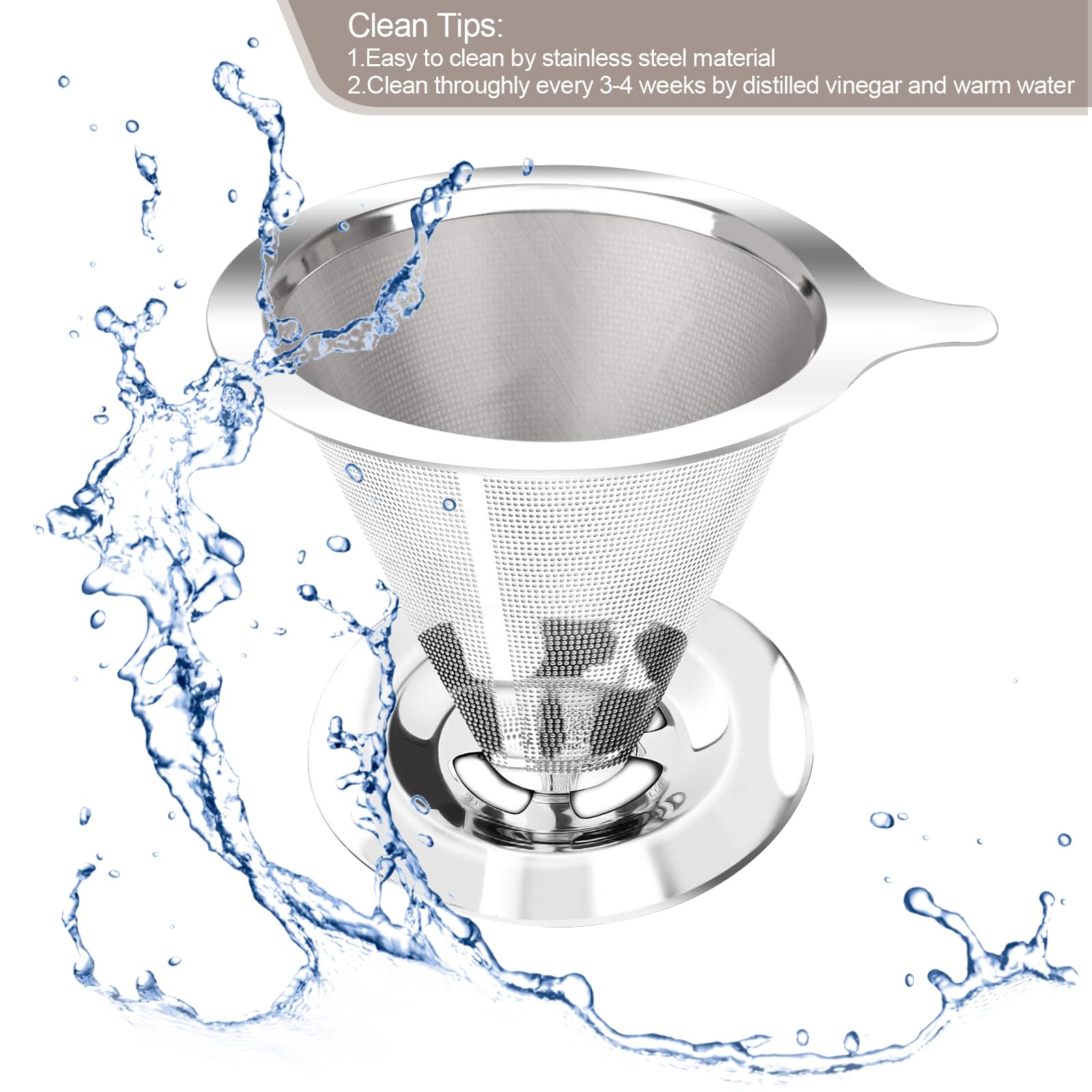 【Easy to clean】: The stainless steel coffee filter is easy to clean and only needs to be rinsed with water, without leaving coffee grounds or other stains, making it convenient and practical.