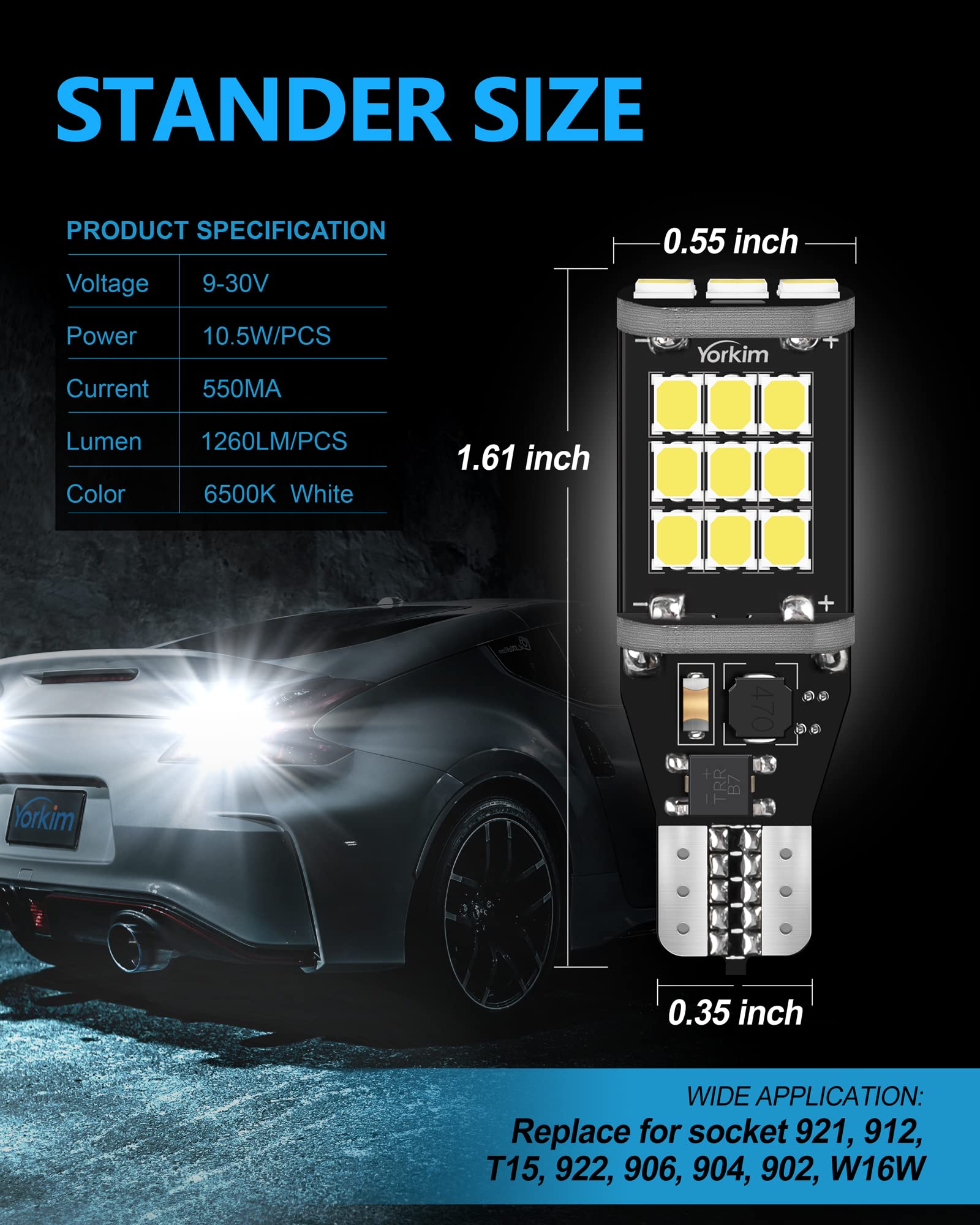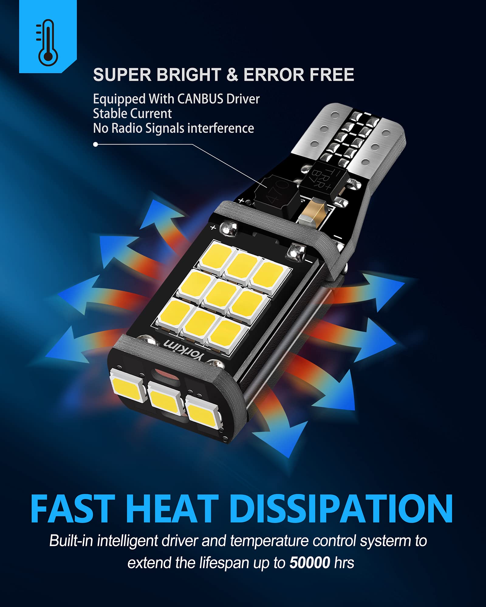 *CANBUS Error Free: Yorkim 921 LED bulb is built-in intelligent CNABUS driver for better performance——will not cause "lamp out" errors in MOST applications.