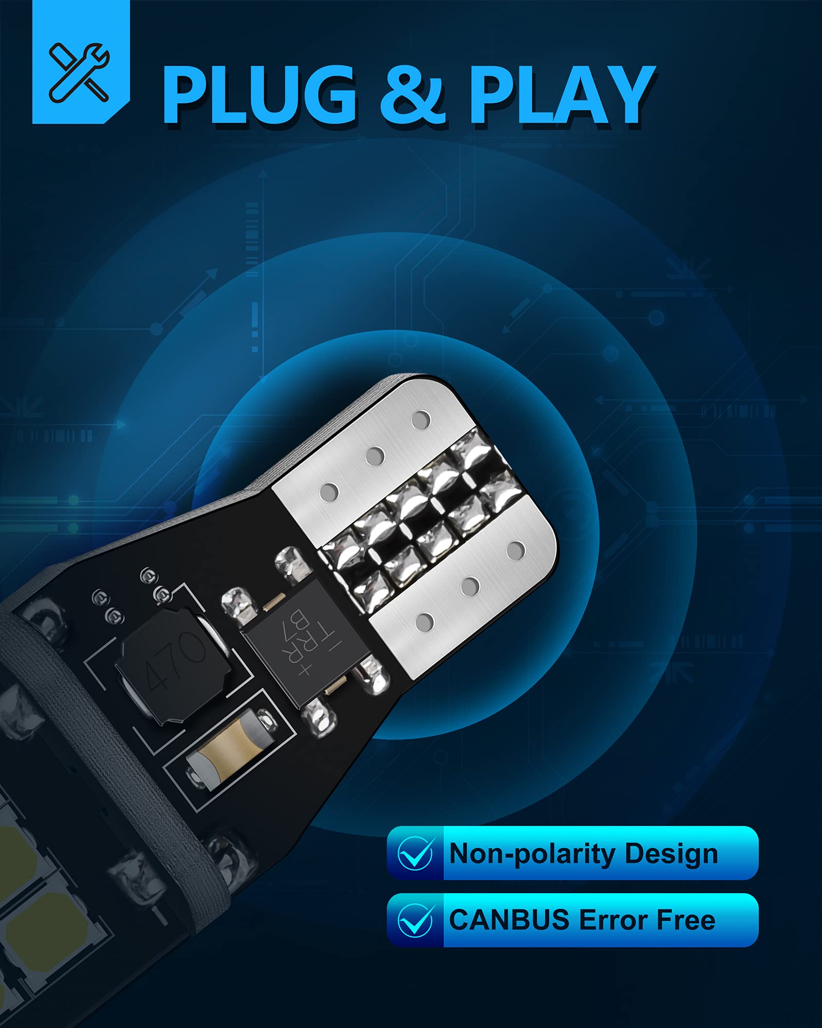 *400% Brighter: Each 921 LED bulb is powered by 21 pieces premium 2835-SMD LED chips, which is 400% brighter than the original bulb and 360° full view angle.