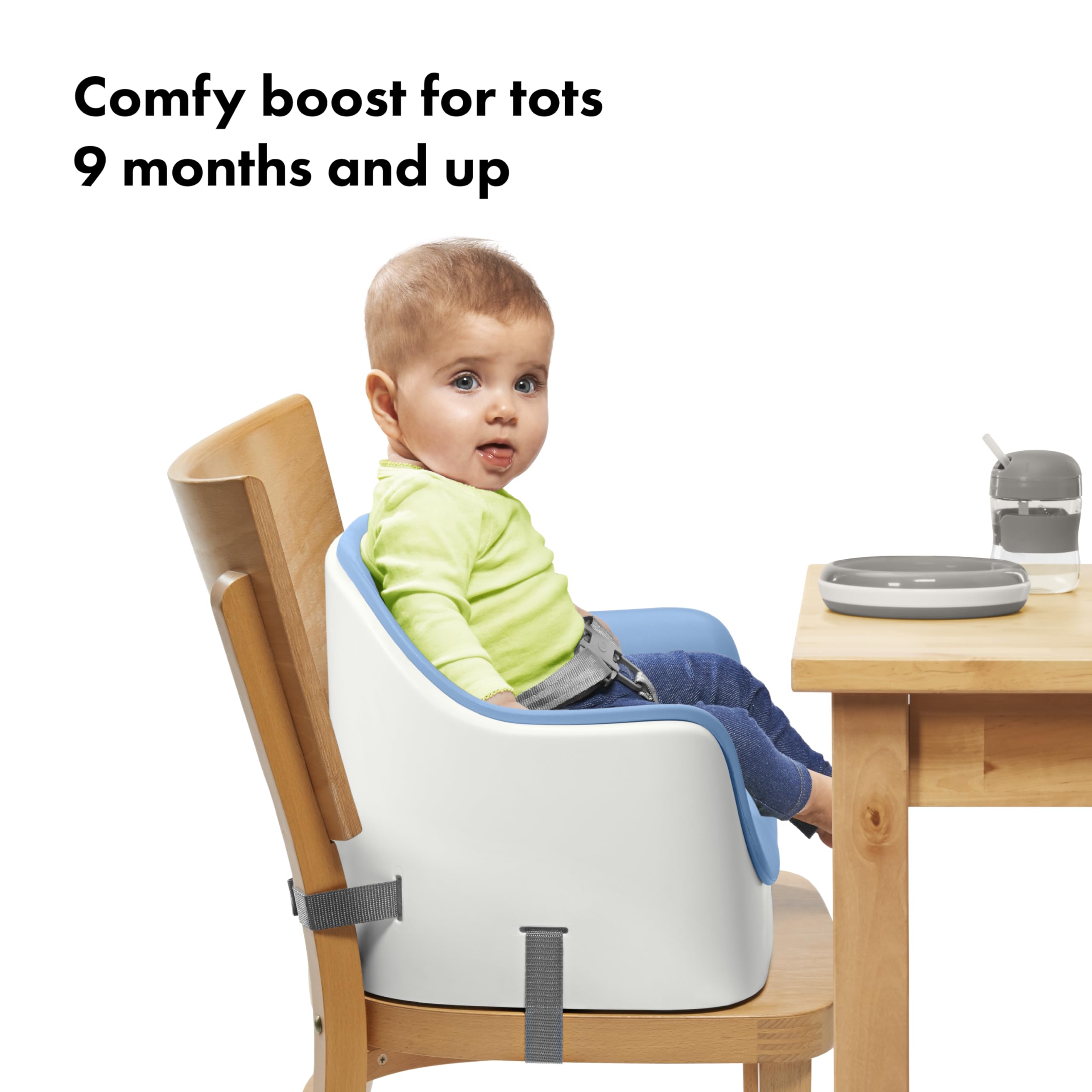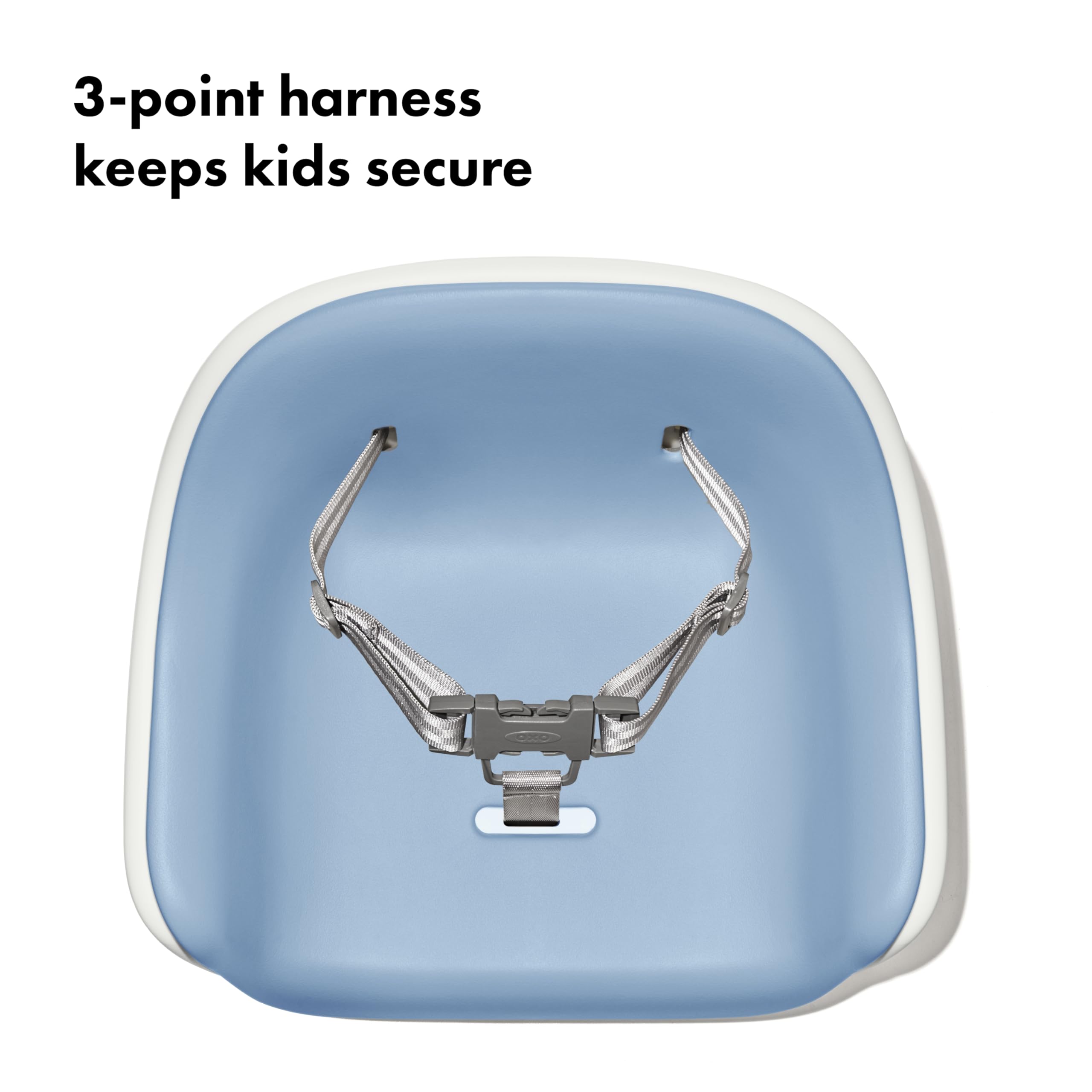 The OXO Tot Nest Booster Seat has a high back and sides to give kids as young as nine months and all the way up to 50 lbs a secure seat at the family table. With a soft, removable cushion and high back and sides, the Nest Booster transforms any grown-up chair into a child-friendly seat. Two side-release buckles keep kids securely strapped in (and prevent them from escaping!). The back and bottom chair straps are adjustable for a secure fit on different chair styles and sizes, and the non-slip feet keep the Booster Seat stable while protecting chairs from scratches. The 3-point harness keeps even the wiggliest tot secure and adjusts as your child grows. The built-in handle allows for easy transport, and the straps store neatly in a compartment under the Booster Seat when not in use. Now available in new colors!