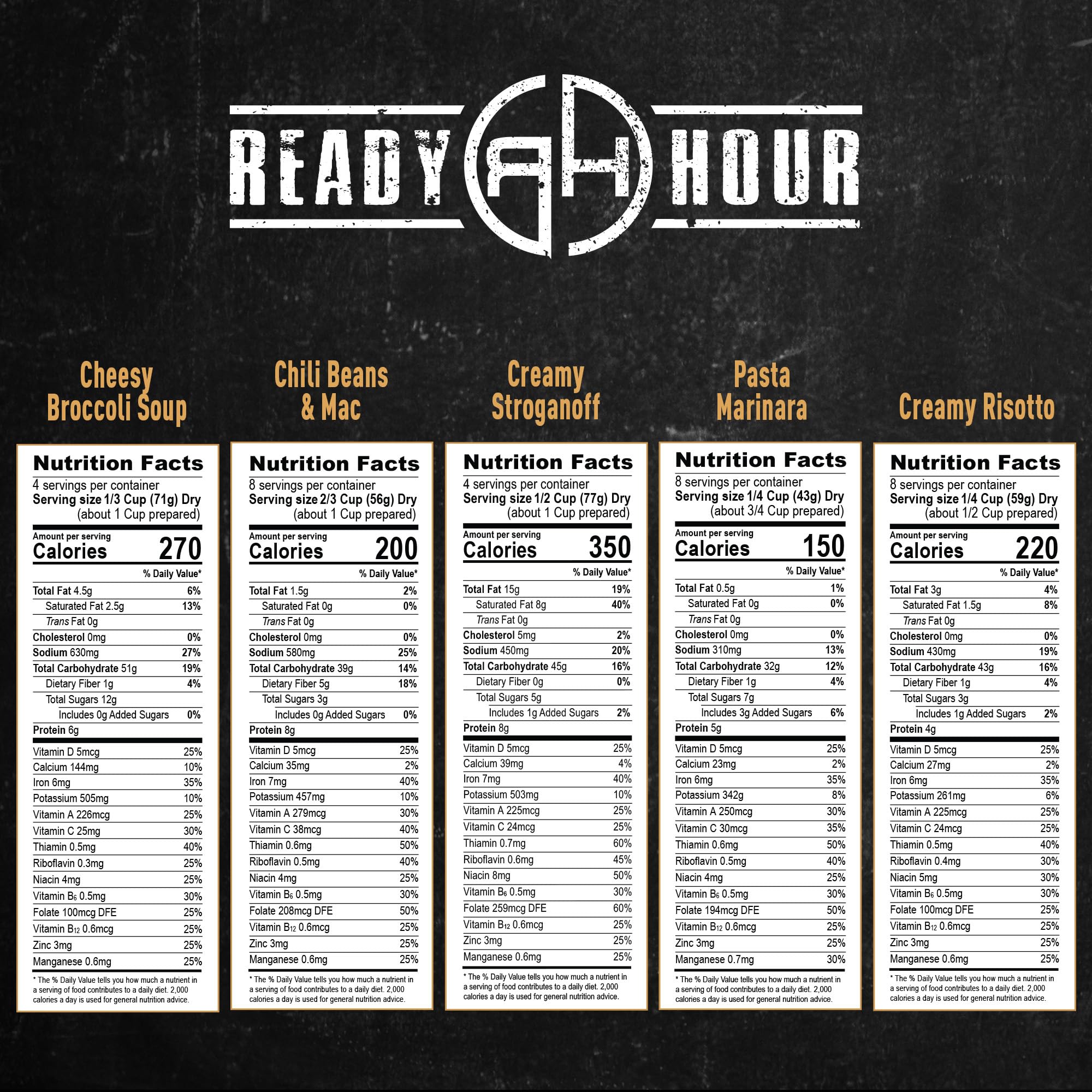 TASTES GREAT: Ready Hour freeze-dried food is designed for emergencies but tasty enough for everyday use.