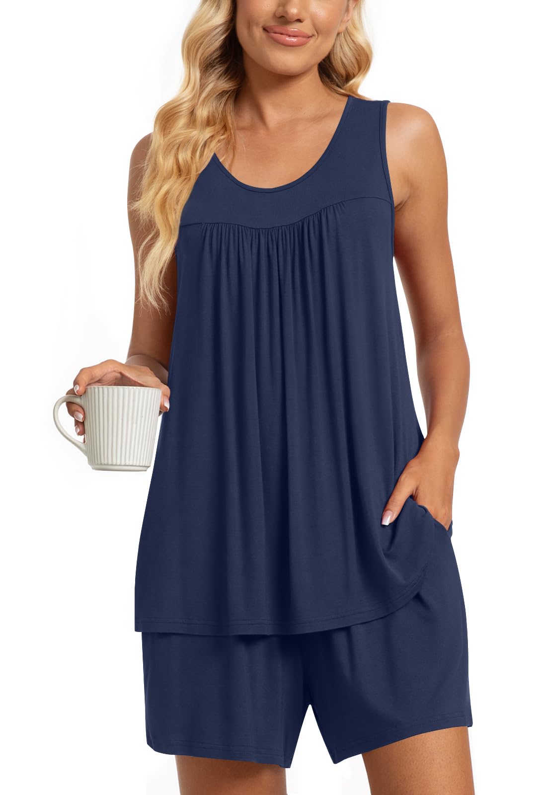 STYLE AND GENEROUS: Wide Shoulder Strap Halter(more comfy tank spaghetti), Pleated Design (Featuring Pleated design on the front and back, this tank sleep dress looks particularly cute), Above Knee Length ( More cold, young and vigor), Soft Fabric (Made of Soft comfy fabric)