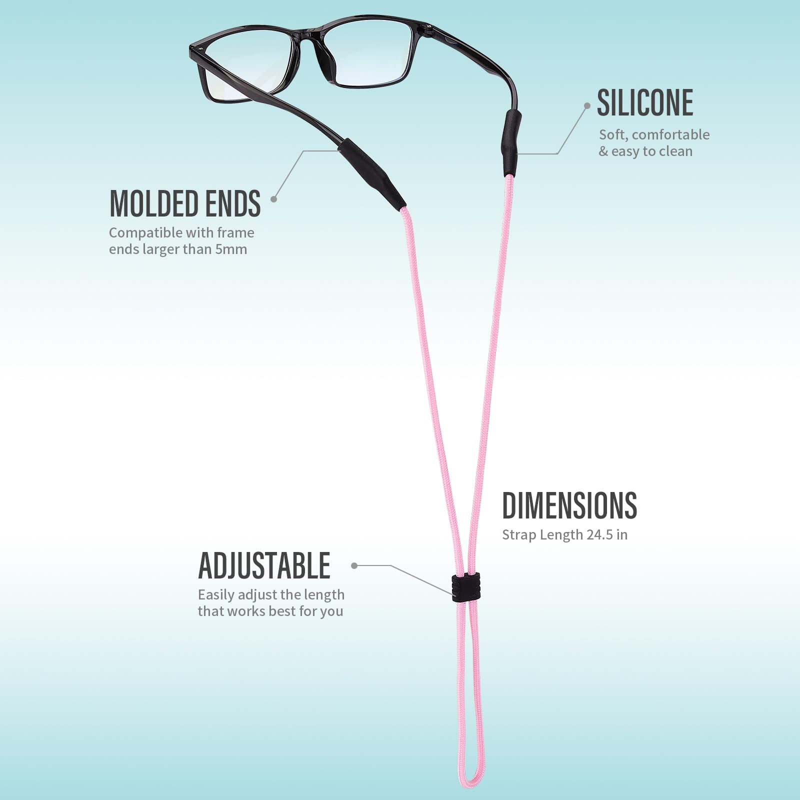 Sizing And Specs: Our eyewear retainer Compatible with frame ends larger than 4.5mm. The adjustable design and maximum length of 25 inches are enough to fit all head and neck sizes.