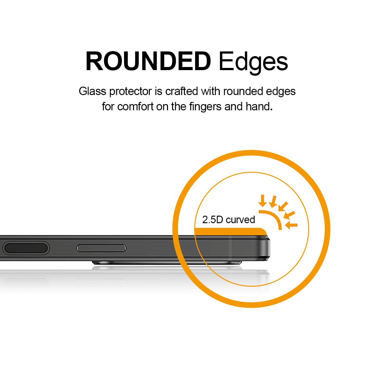 2.5D rounded edge glass for comfort on the fingers and hand