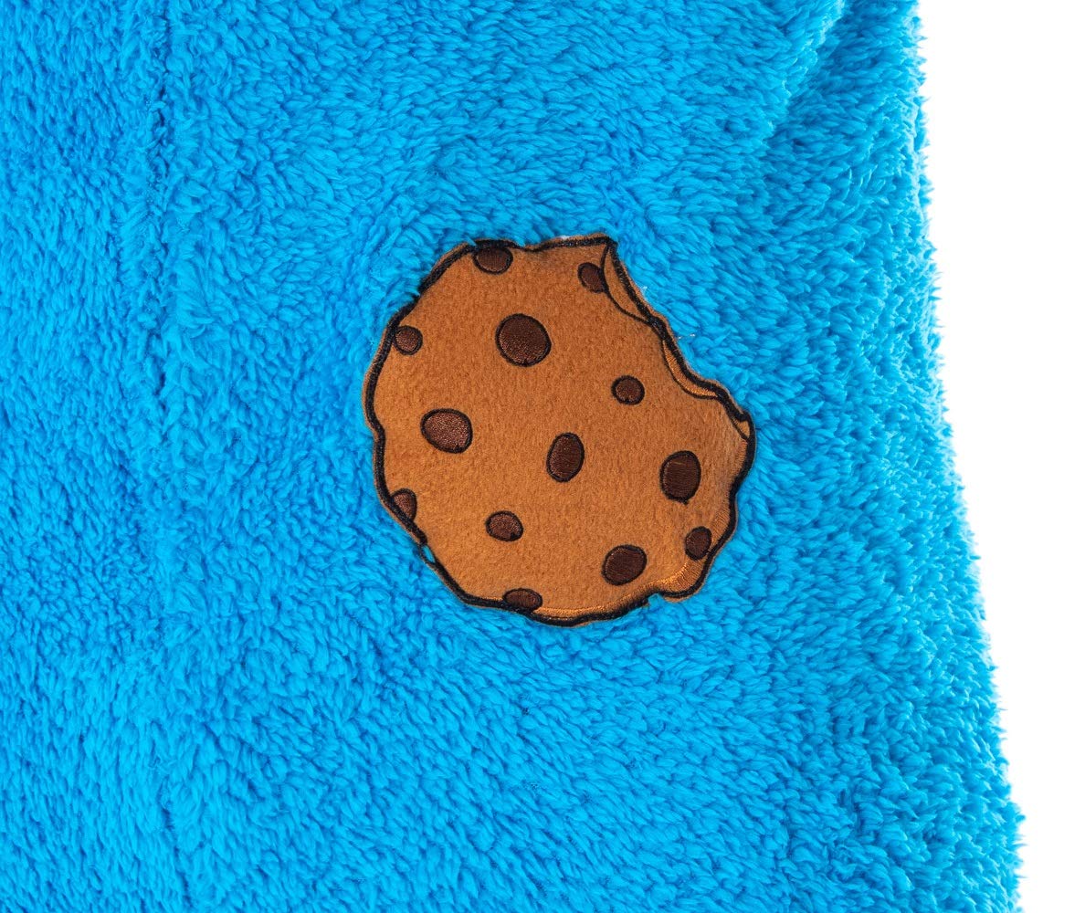 Description Cookie Monster union suit, guaranteed! Sesame Street is one of the most popular children's television shows ever! Many of us as adults remember the animated and lovable characters like Grover, Bert, Ernie, Big Bird, Snuffleupagus, Elmo, The Count, and more! This Cookie Monster pajama is great for any fan. It has a great costume style look with extra-large 3D eyes on the hood and puffy cookie on the front. It is made from a super-soft 100% polyester Faux Shearling fleece fabric with a contrasting black inner hood and ankle and wrist cuffs!