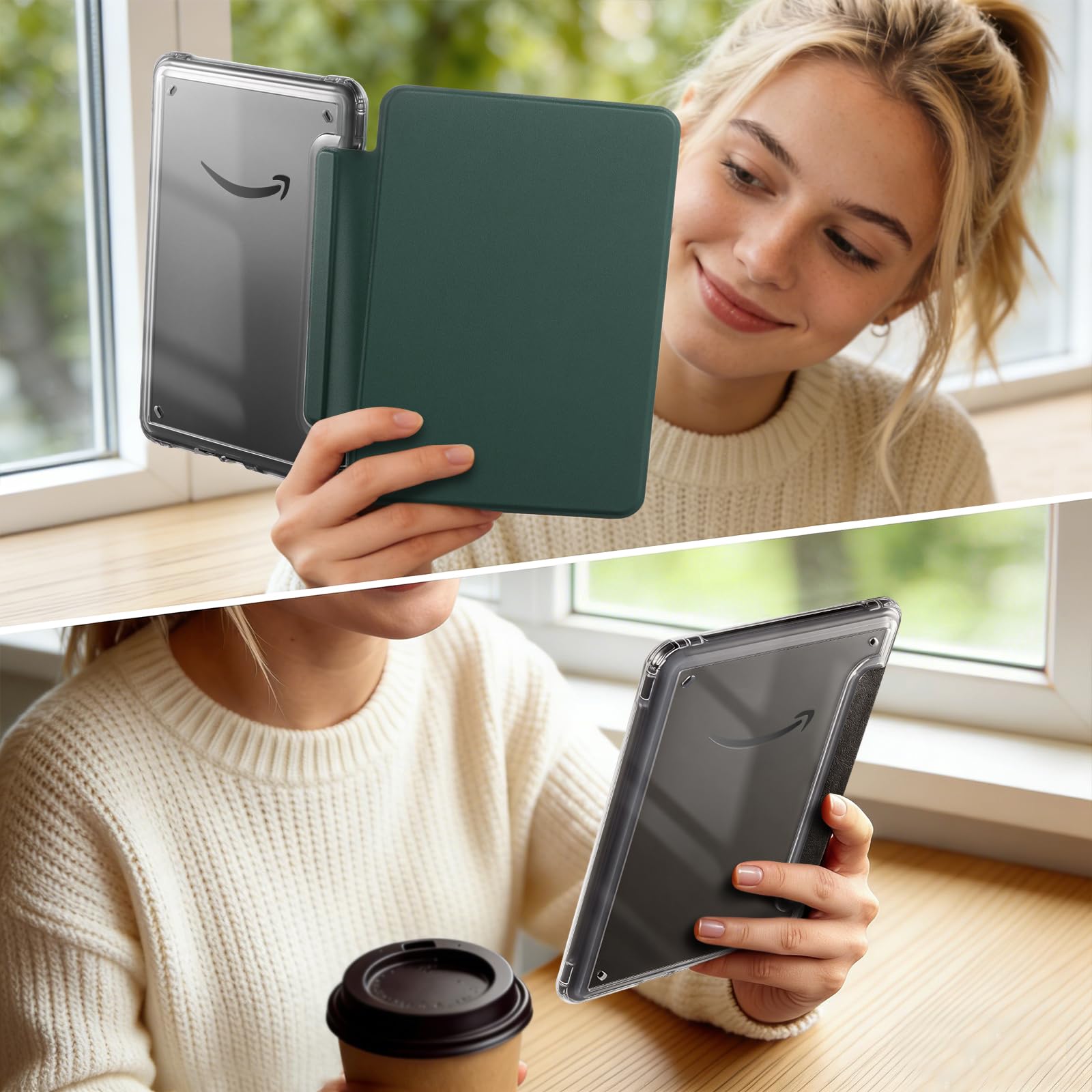 Comprehensive Protection for Screen & Device — The premium waterproof PU leather front cover combined with a soft microfiber lining prevents scratches and smudges, while the flexible clear TPU back case absorbs shocks and drops—providing full 360° protection for your Kindle.