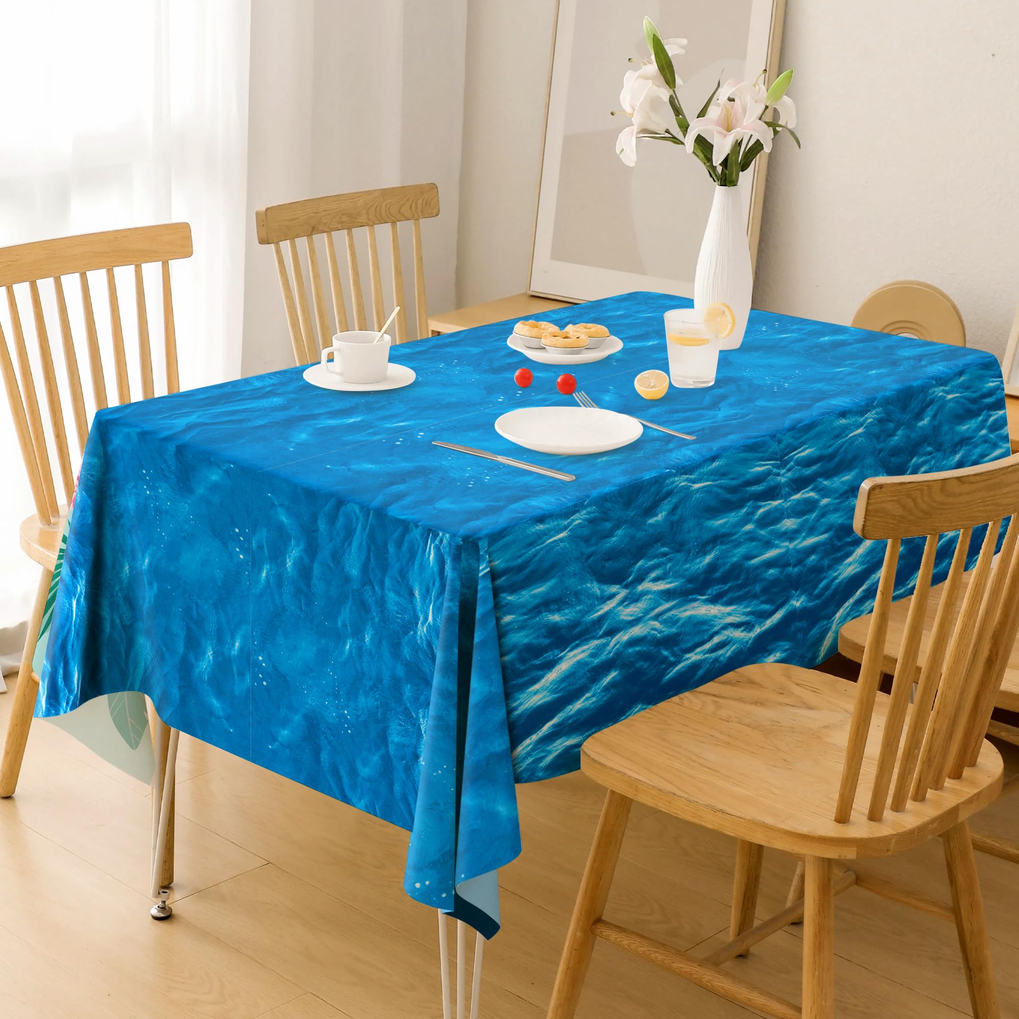 [Generous Size for Versatile Use]Measuring approximately 52 x 87 inches, this ocean tablecloth is perfectly sized to fit most dining tables. It's great for both indoor and outdoor table decorations, adding a touch of the underwater world to your event. As a key element of beach theme party decorations, it enriches the visual appeal of your party.