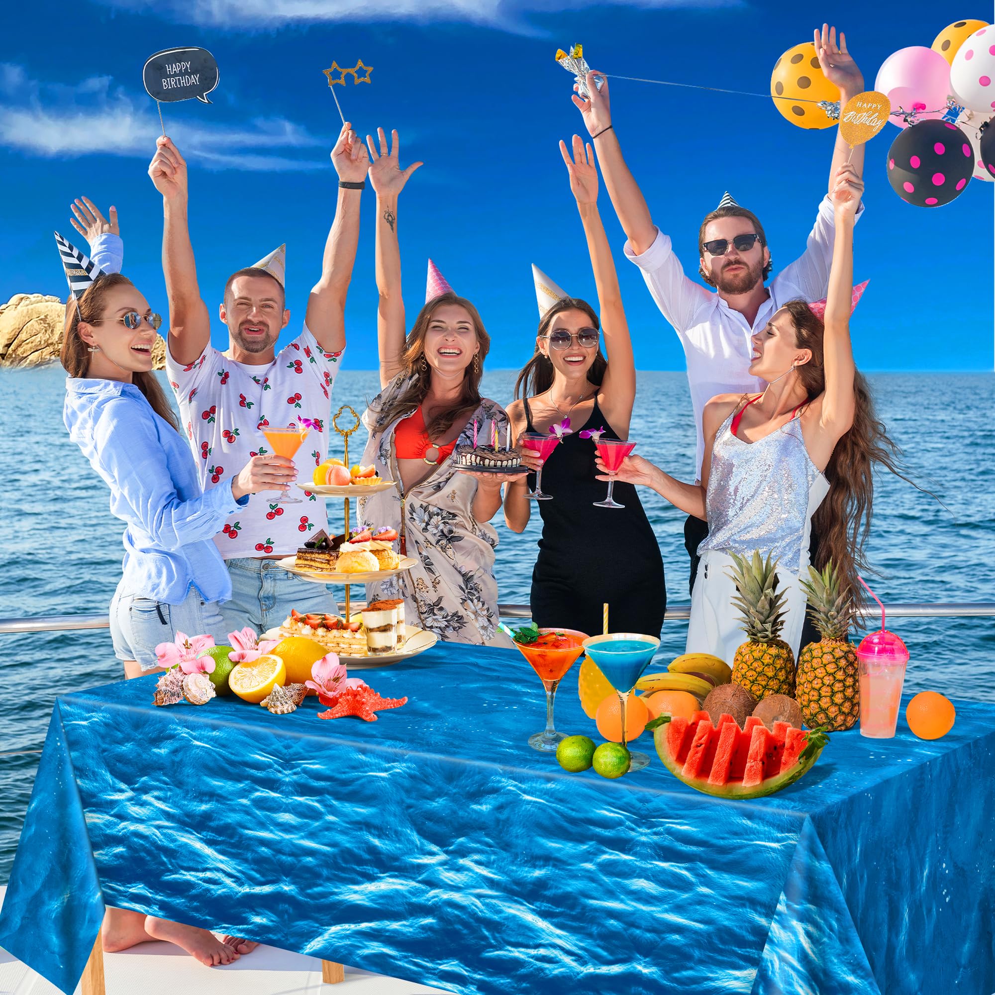 [Broad Range of Applications]Highly versatile, this ocean tablecloth is suitable for a wide variety of parties. From beach parties to sea - themed birthday parties, as well as summer pool parties and general ocean theme parties. It infuses your party table with a watery charm, creating lasting memories for all attendees.