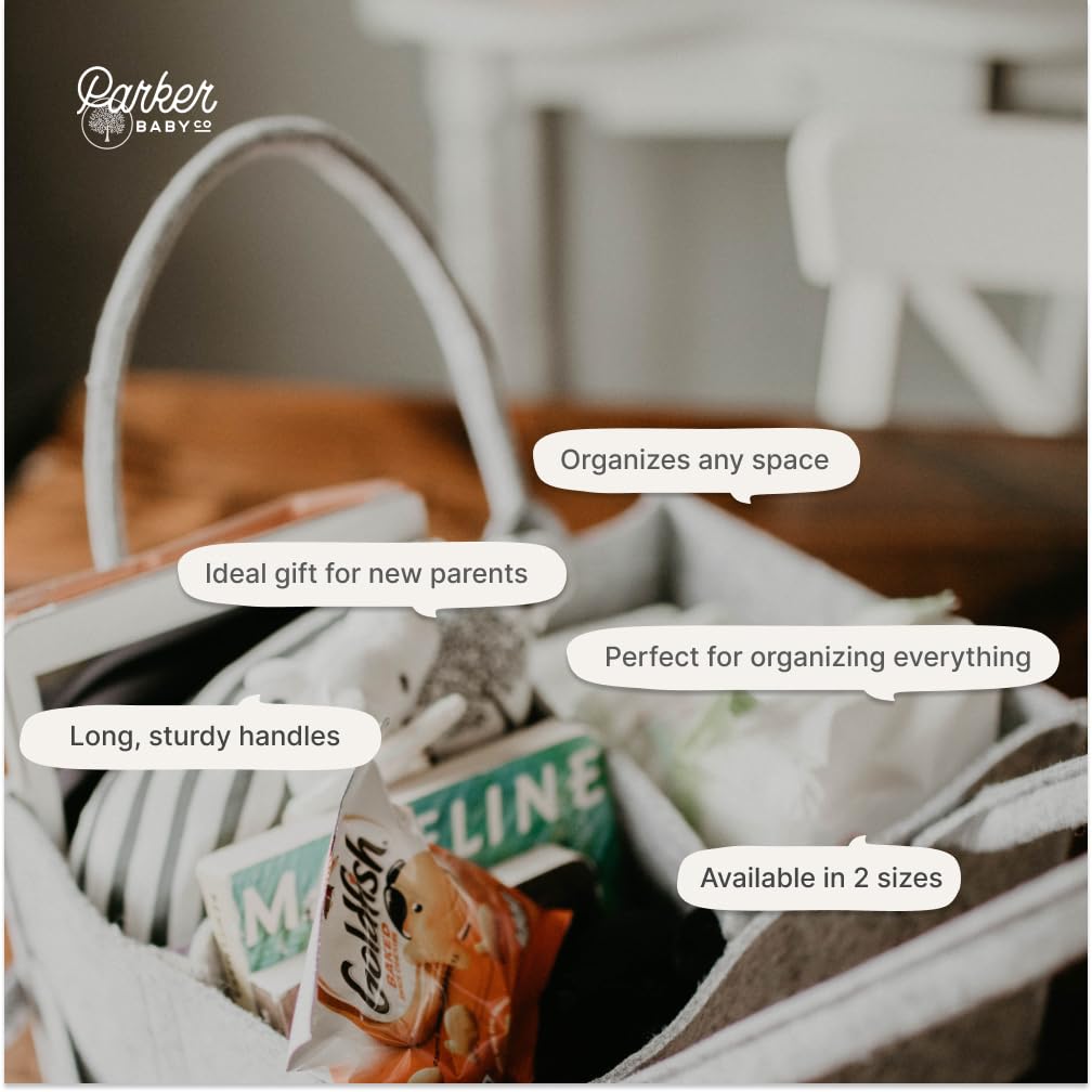 QUALITY AND SATISFACTION GUARANTEE: Crafted from soft felt, our diaper caddy is built to last. The high-quality materials ensure durability and easy maintenance. We stand behind the product with a satisfaction guarantee, making your purchase risk-free. Elevate your diaper organization with the Parker Baby Diaper Caddy – the ultimate diaper bag essential and nursery organizer.