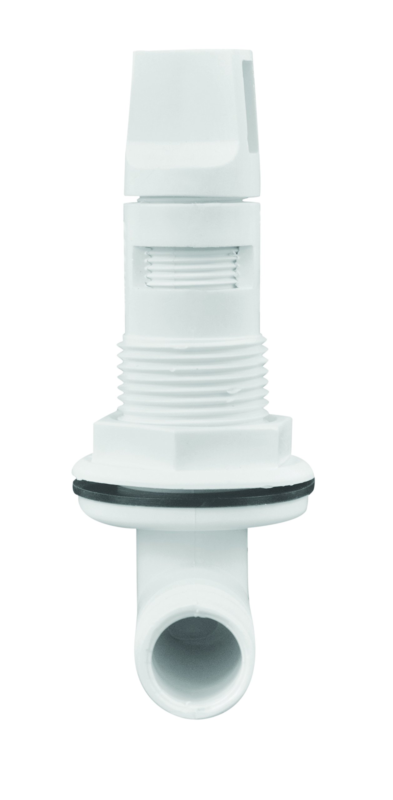Designed for use on livewells featuring built-in overflows, as well as recirculating systems, this single-valve adjustable spray head provides a 90 degree fitting for installations in tight spaces. Rotating head with O-ring adjusts and maintains flow setting. Attwood Corporation has been an award-winning leader in engineering, testing, and manufacturing the highest quality marine products for over 100 years. We deliver safe and reliable lighting, fuel systems, water systems, seating & pedestals, swim ladders, custom upholstery, and general marine accessories that are easy to install and meet regulatory compliance.