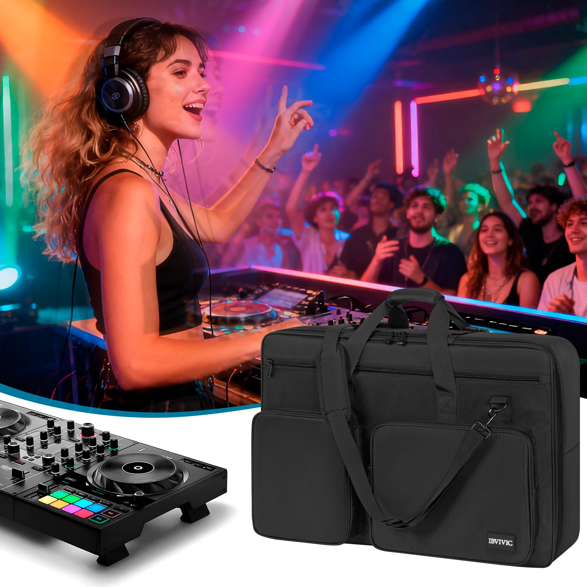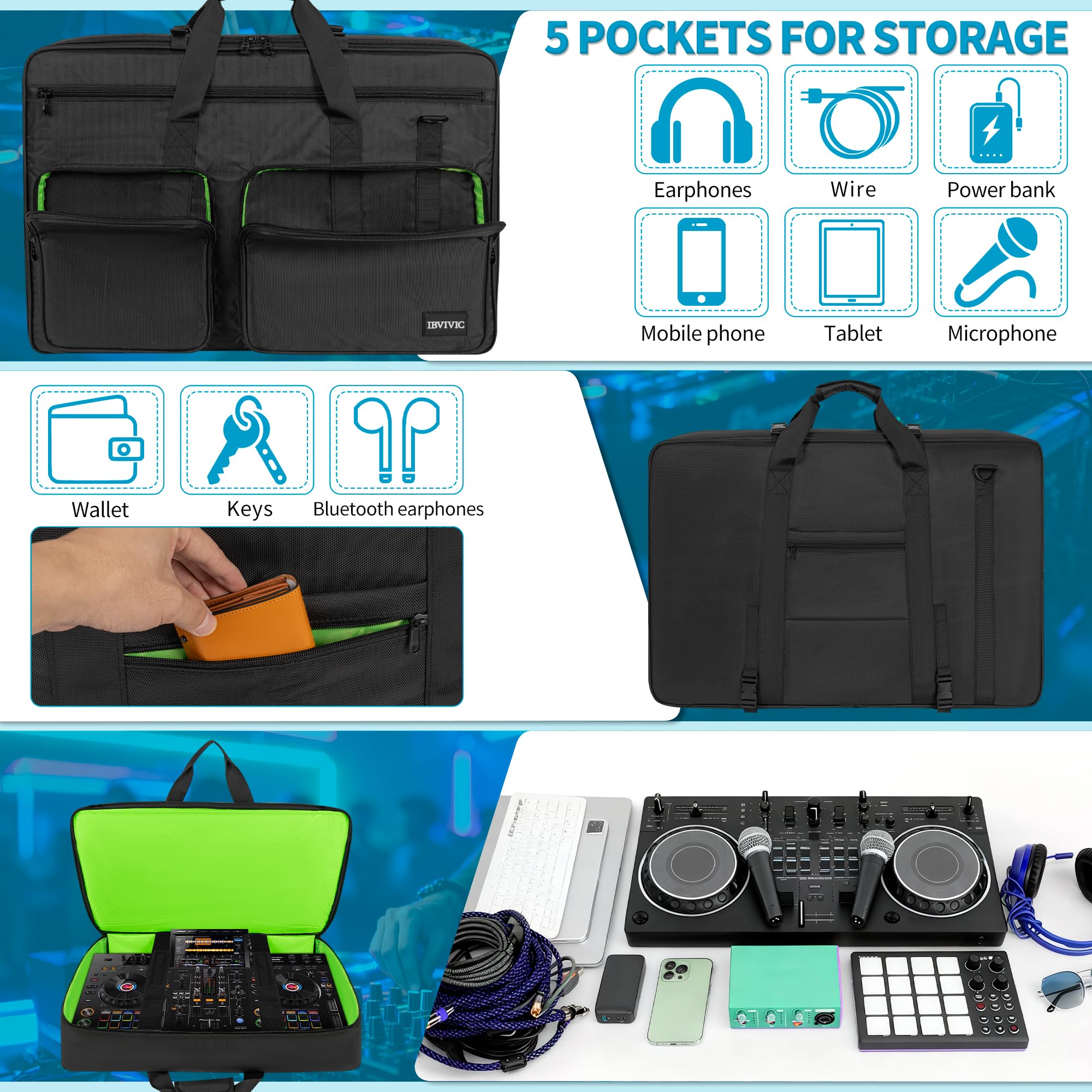 【Large Capacity Design】Lightweight and high capacity to fit in your bag or luggage & protect from impacts or splashes. The outer layer has two storage bags, which can store some small items, such as DJ pedals. Zipper is convenient for you to put your DJ Controller and it's accessories in and out the case