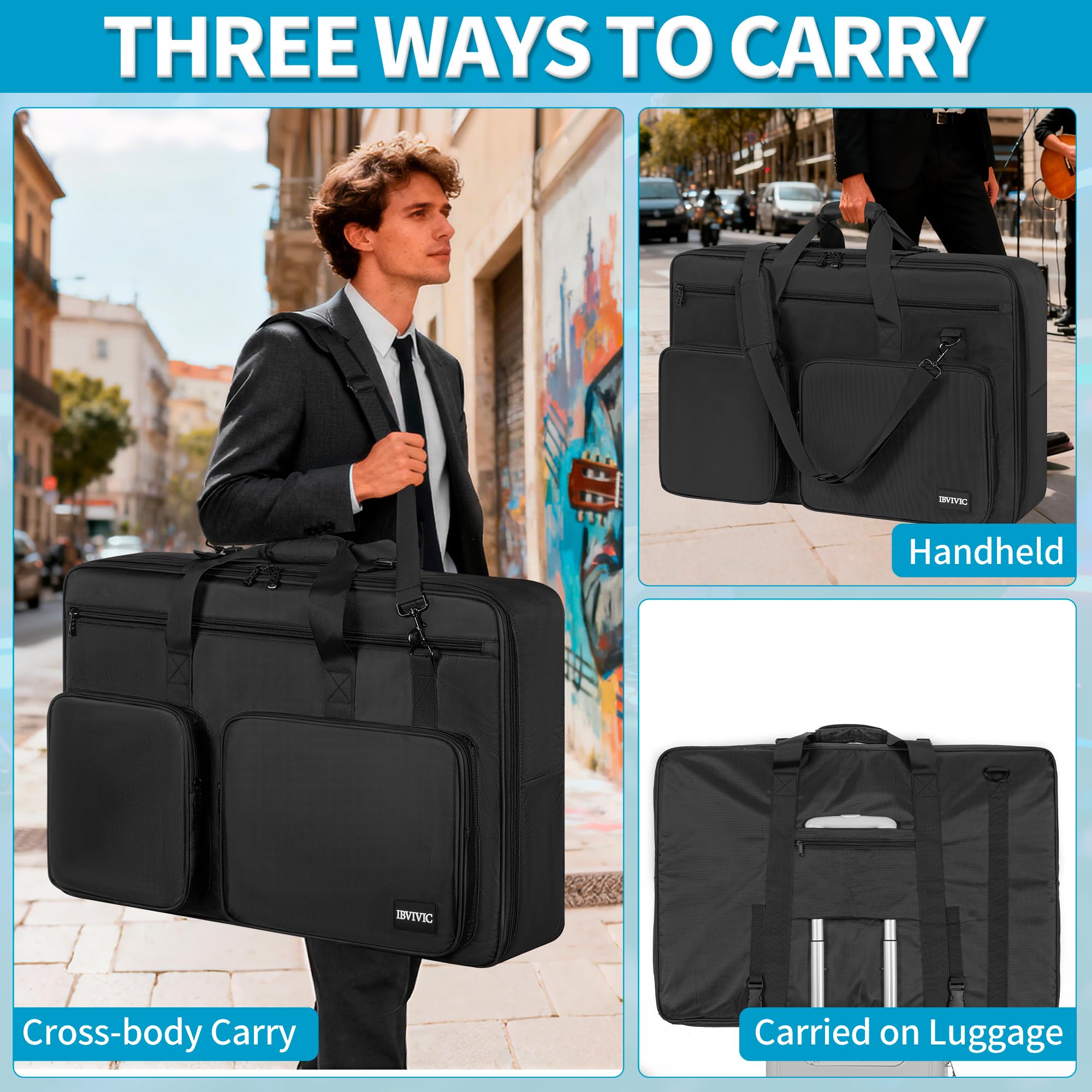 【Three Ways to Carry】For travel and storage device accessories. Our dj bag comes with a padded handle & 1 adjustable shoulder straps, which makes carrying your DJ controller much more comfortable.The back strap design easily fits into the luggage railing, making it convenient for travel