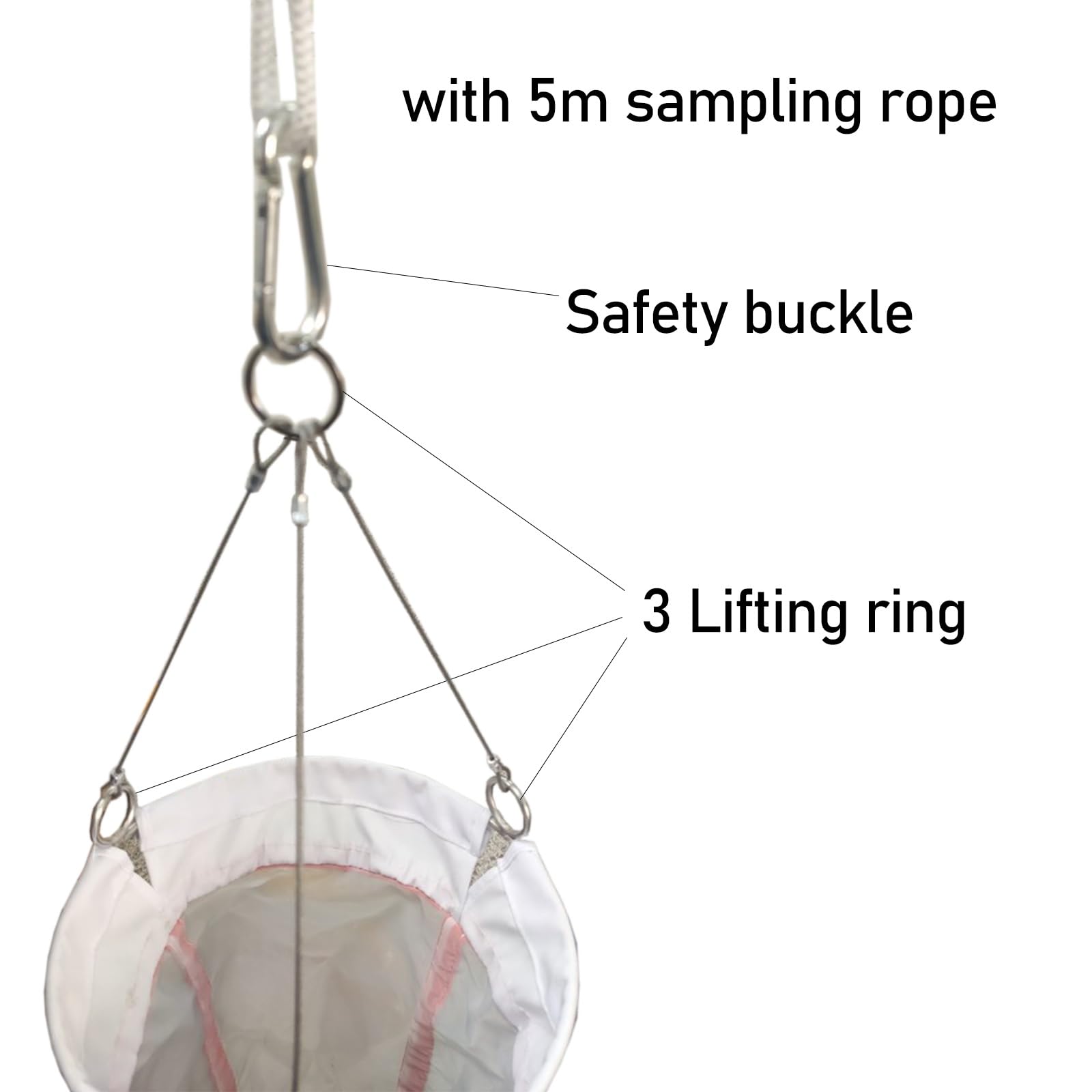 What You Will Get: 1 x Plankton collection net, 1 x Contains 5 m sampling rope, 3 x Lifting ring, 1 x Safety buckle