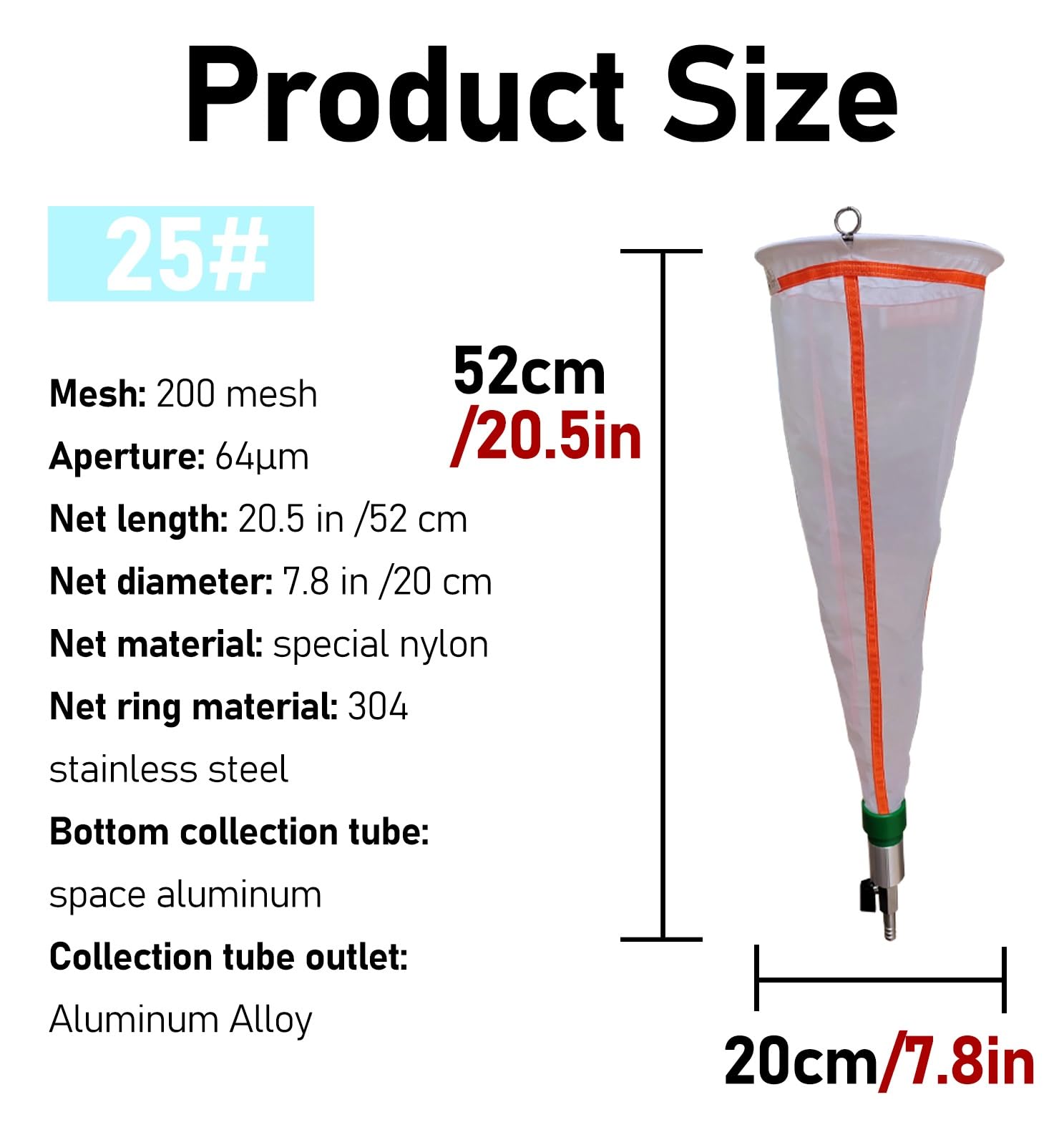 Experimental Grade Nylon: Our plankton nets are made of experimental grade nylon, can tolerate acid and alkali, repeated cleaning is not easy to wear. The bottom collection tube uses Sturdy Aluminum Material, with high strength and remains intact even after long periods of underwater work