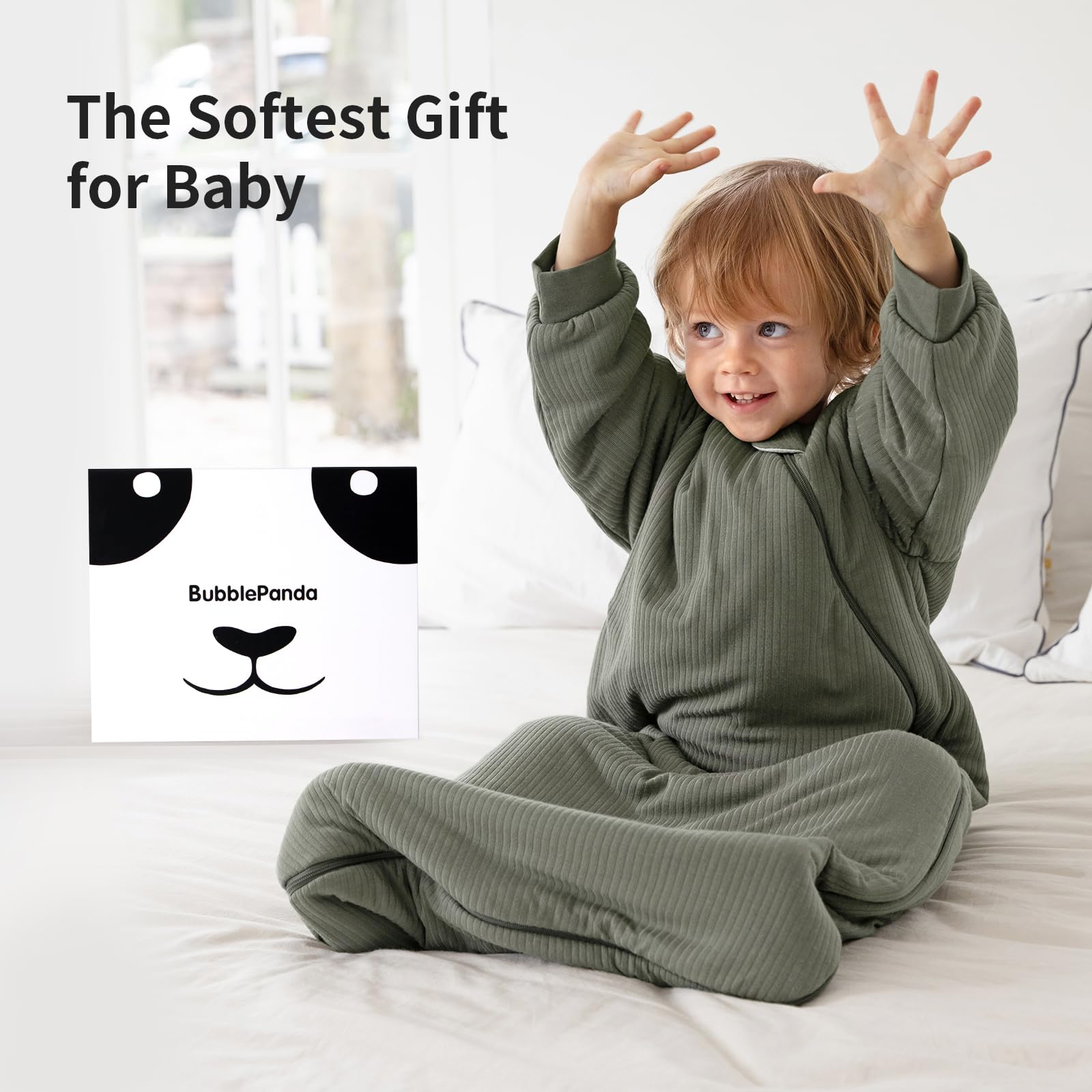 BubblePanda's Baby Sleep Sack is a game-changer for both babies and parents. Crafted with care, it's made from ultra-soft and hypoallergenic rayon Made from Bamboo, ensuring a cozy and breathable environment that regulates body temperature and wicks away sweat. The super-soft fabric is gentle on delicate skin, outperforming cotton and wool in terms of softness, breathability, and moisture absorption. Safety is paramount, with a deep, narrow neckline and zipper protector, while the breathable fabric prevents overheating. Designed for convenience, the 2-way side zipper simplifies midnight diaper changes, and the roomy leg space promotes healthy hip development. Plus, it's machine washable and built to last.