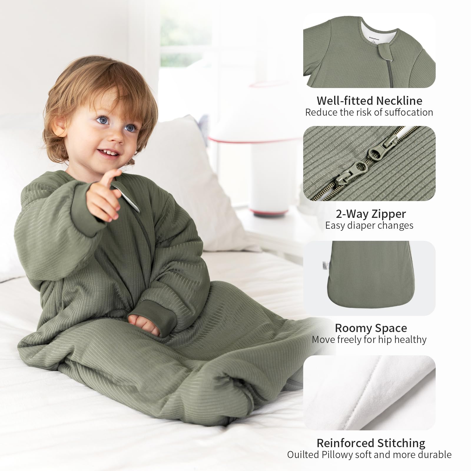 【1.5x Breathable】Our sleep sacks are made of Rayon Made from Bamboo, which is breathable, in addition, the ribbed design makes it more breathable, for heat regulation and moisture wicking, helping to keep your baby comfortable and dry, making it easier for parents and babies alike.