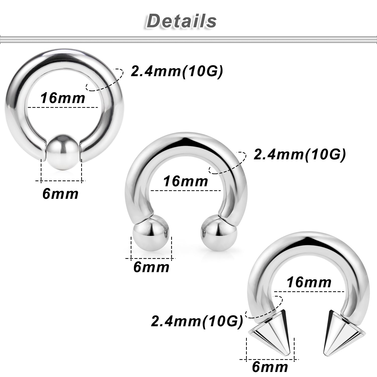 One Order Included 6 PCS Septum Rings Have 3 Styles, 1 Pairs Spike Horseshoes Septum Rings,1 Pairs Balls Horseshoes Septum Rings,1 Pairs Captive Bead Septum Rings,Economical Price with Trendy Design Give You a Colorful Day.
