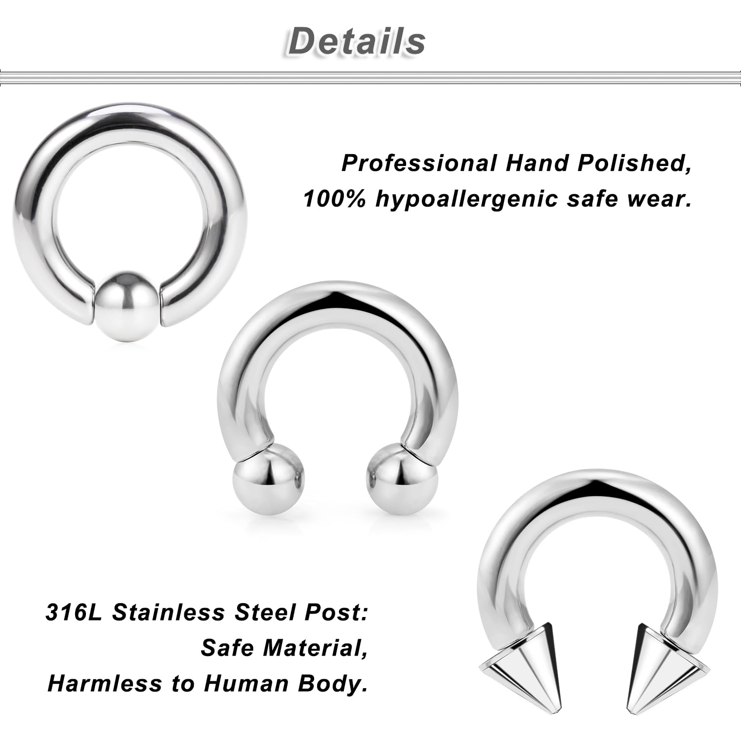 Made of Surgical Grade 316L Stainless Steel, Safe Material, Hypoallergenic, Harmless Your Skin, Super Smooth and Shiny Surface, It's a Healthy Choice for You.