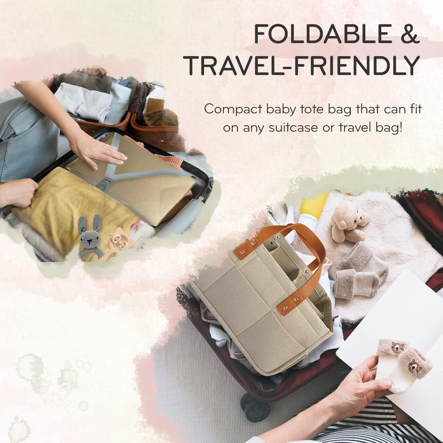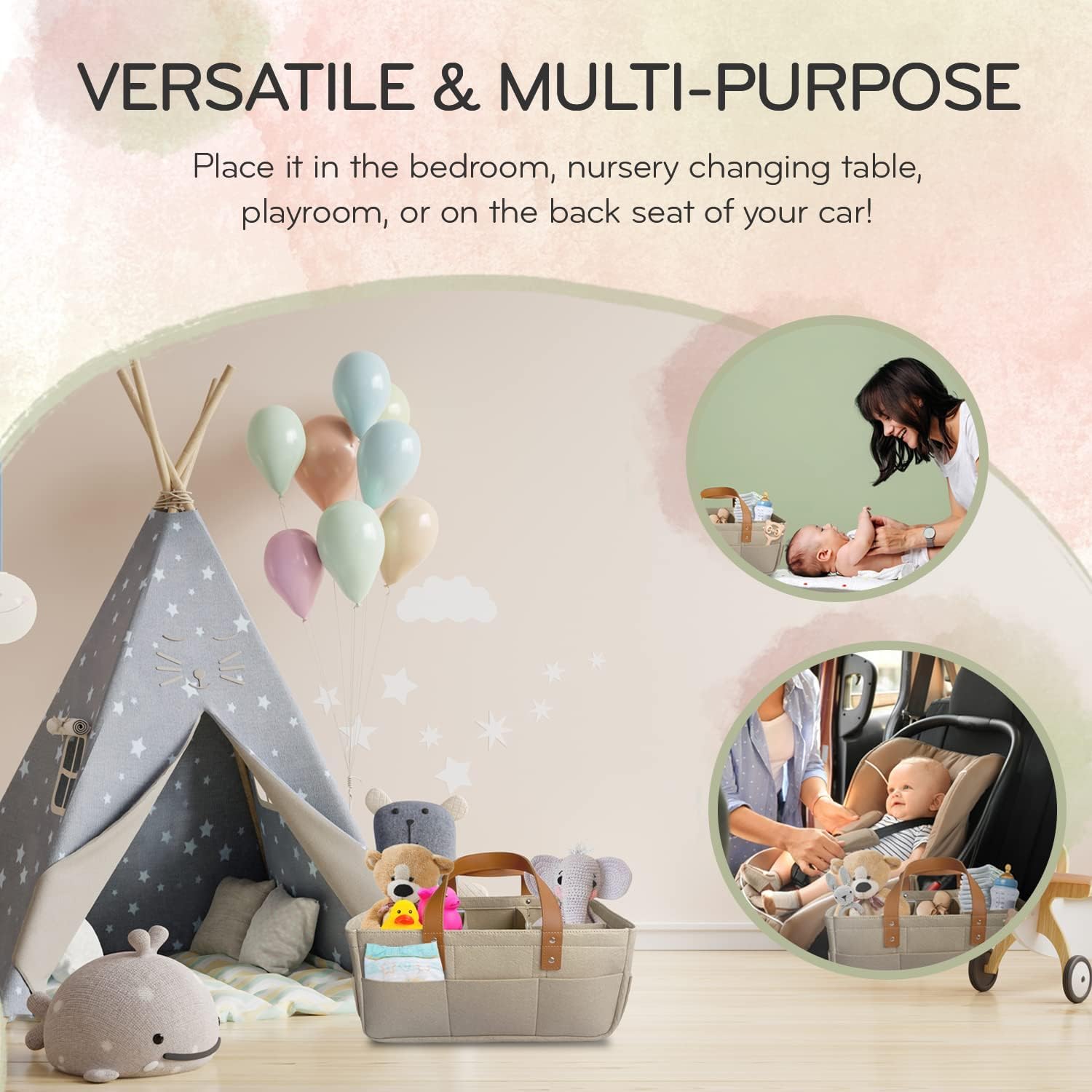 DURABLE & WASHABLE - Large/small diaper caddy for baby boy/girl made from light polyester fabric & PU leather handles. Designed to last, our portable diaper caddy for car/ diaper organizer for changing table can be washed with mild soap & dry cloth.