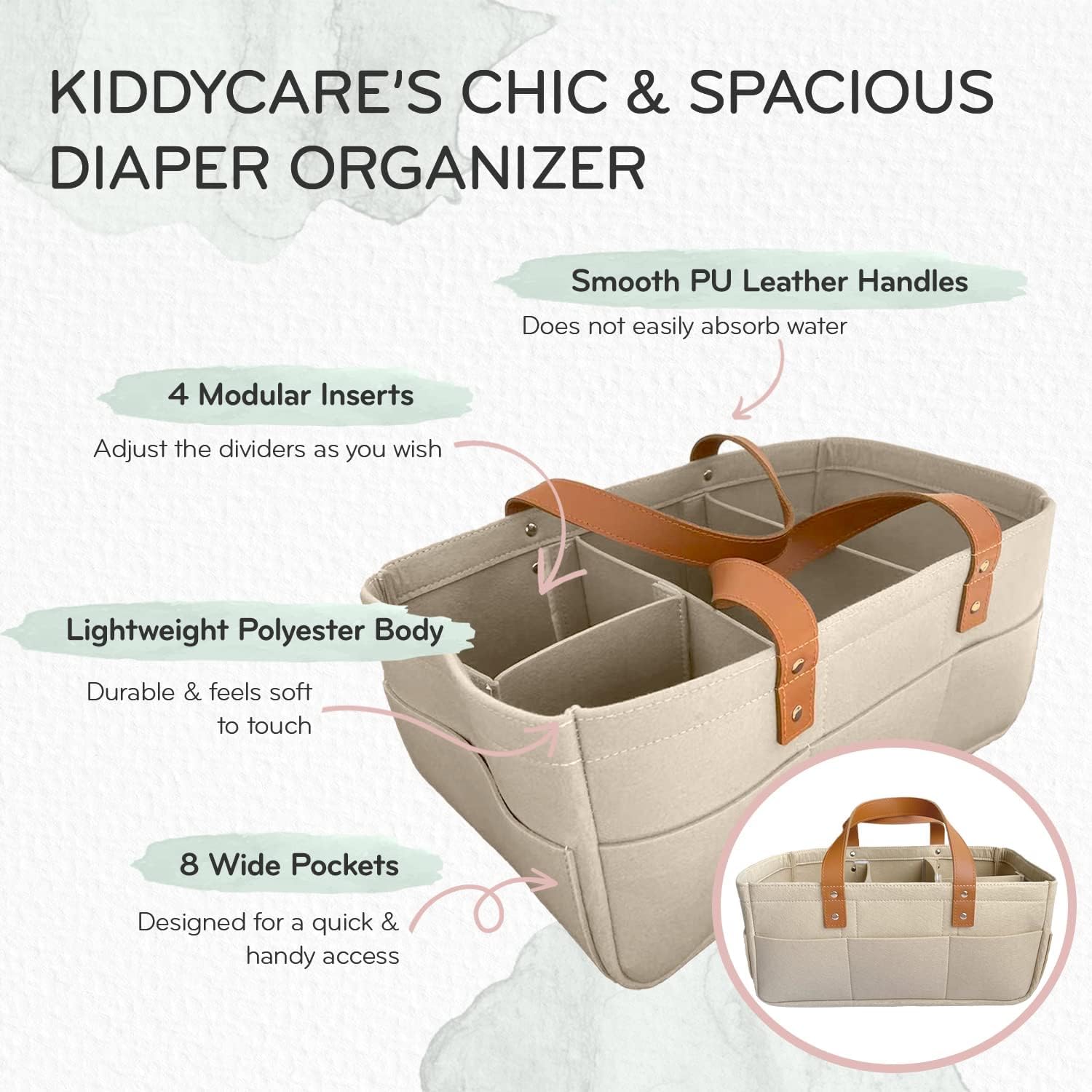 CHIC & SPACIOUS BABY BASKET - KiddyCare Baby Diaper Caddy Organizer comes with 8 wide pockets & 4 removable dividers. With our handy storage caddy/diaper organizer for dresser/bath caddy for baby, every diaper change is an arm’s reach away.