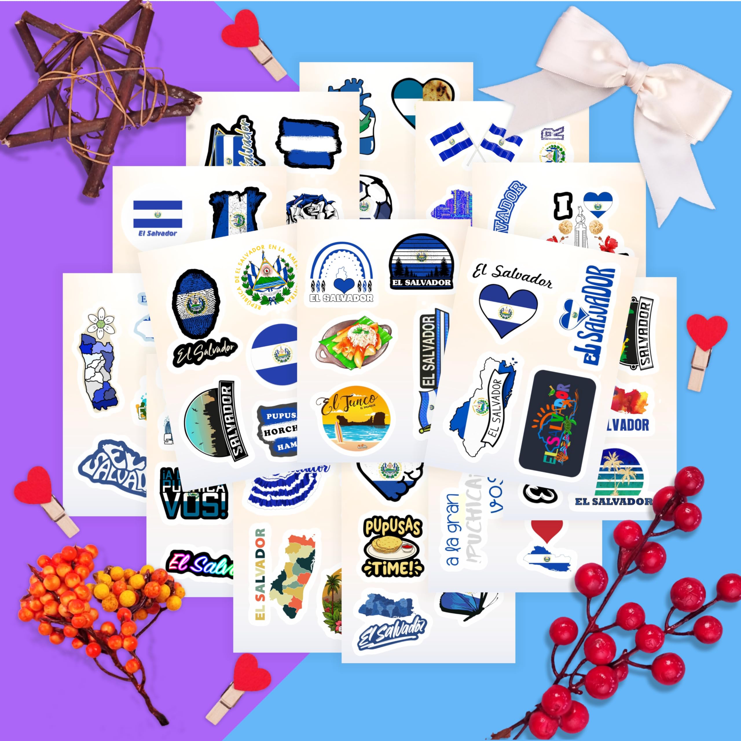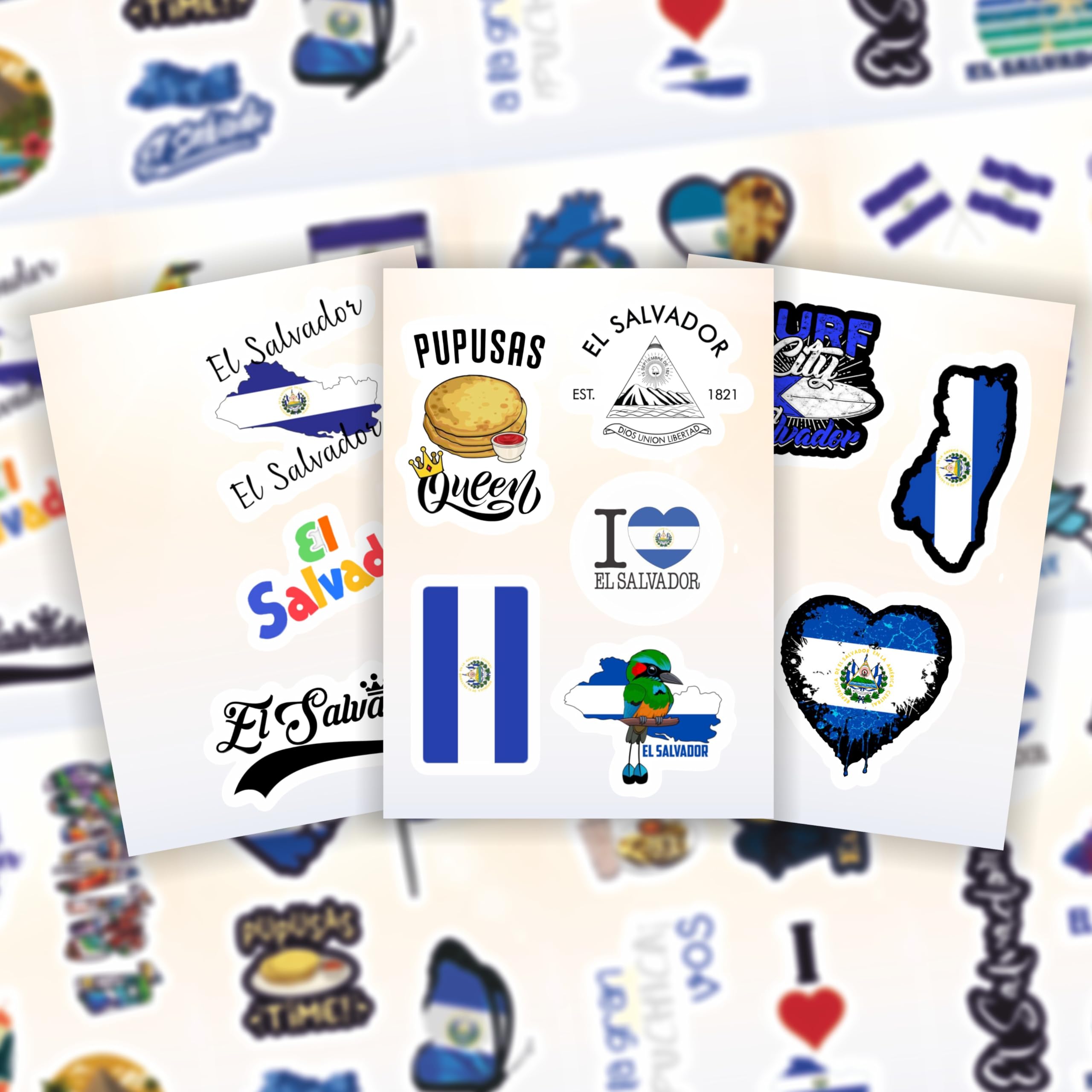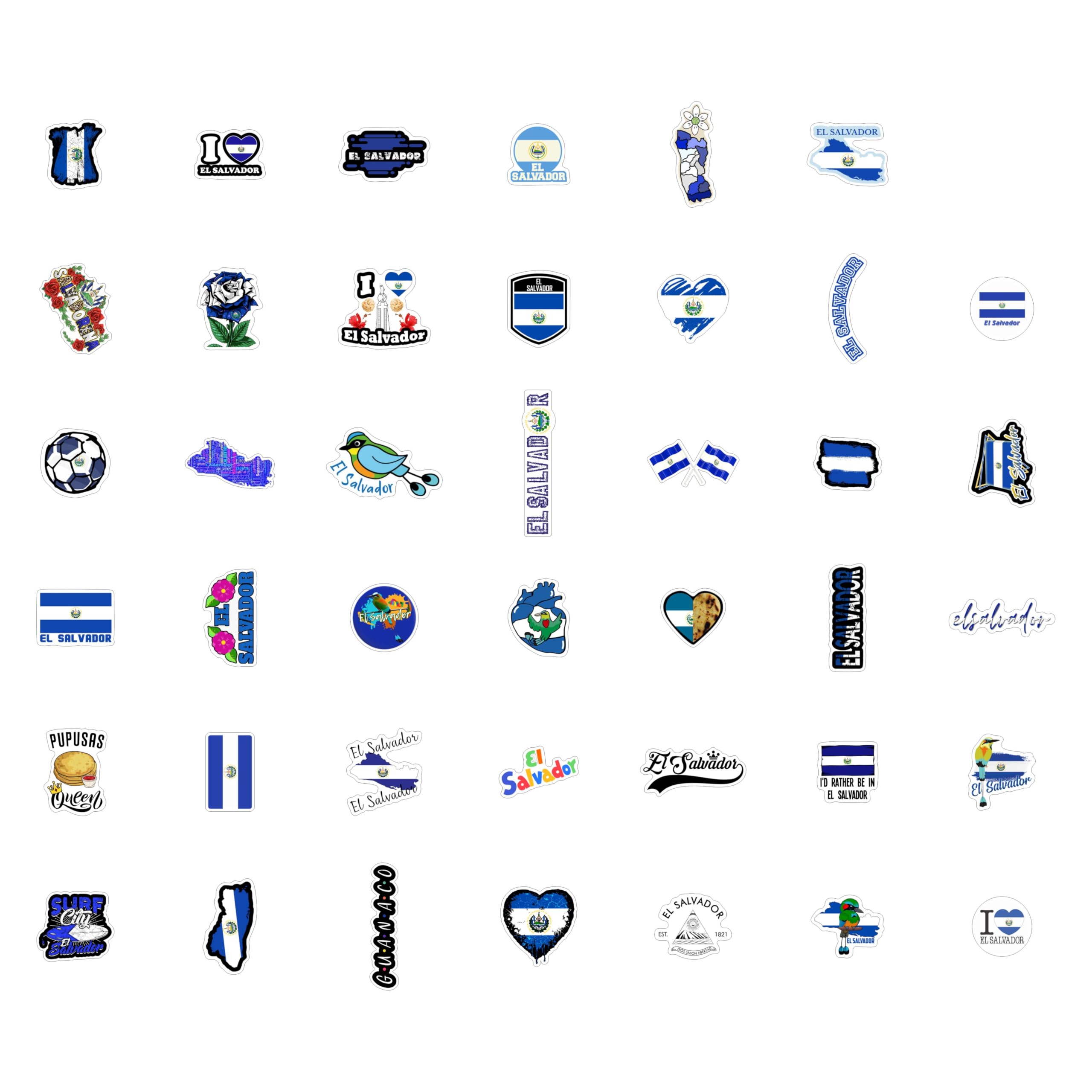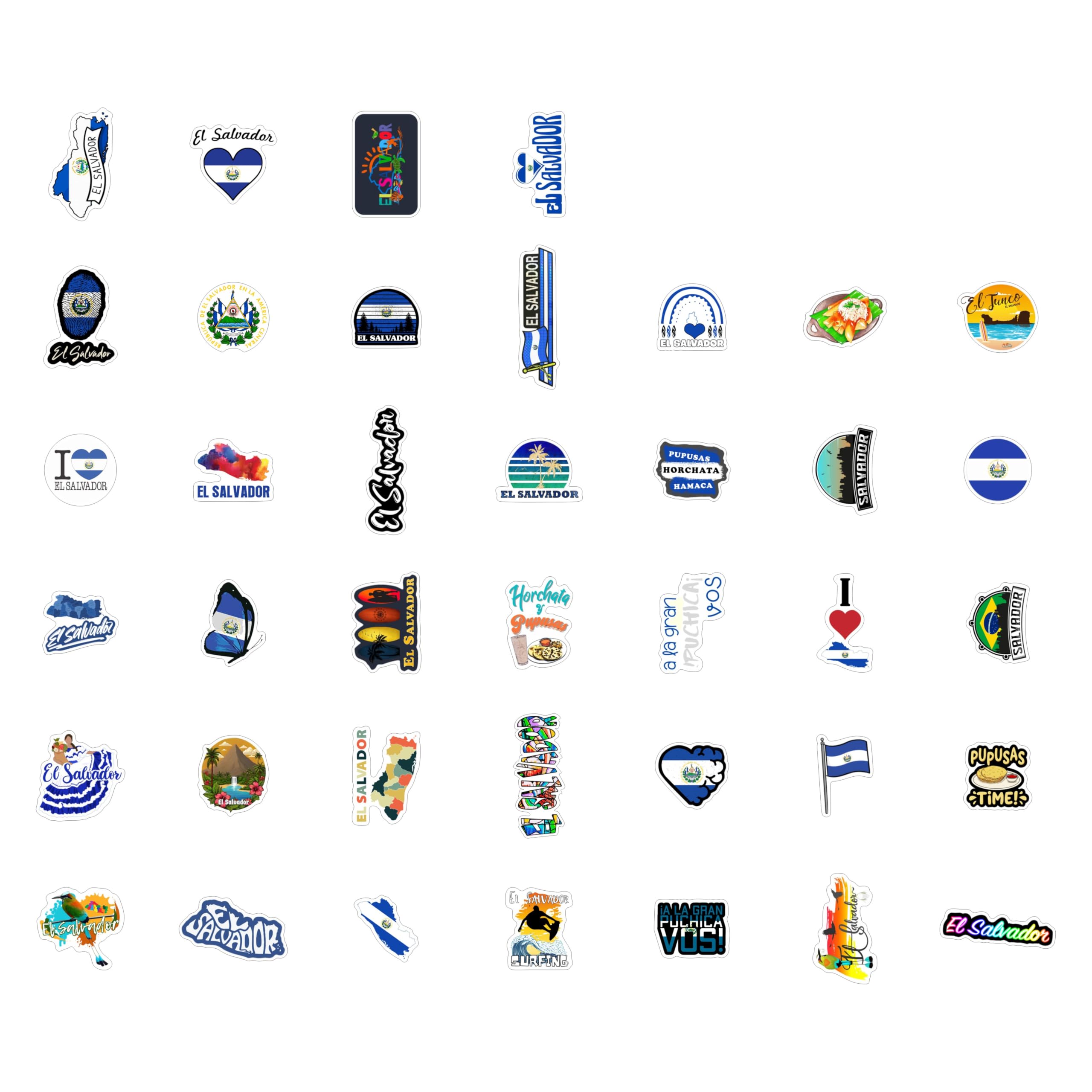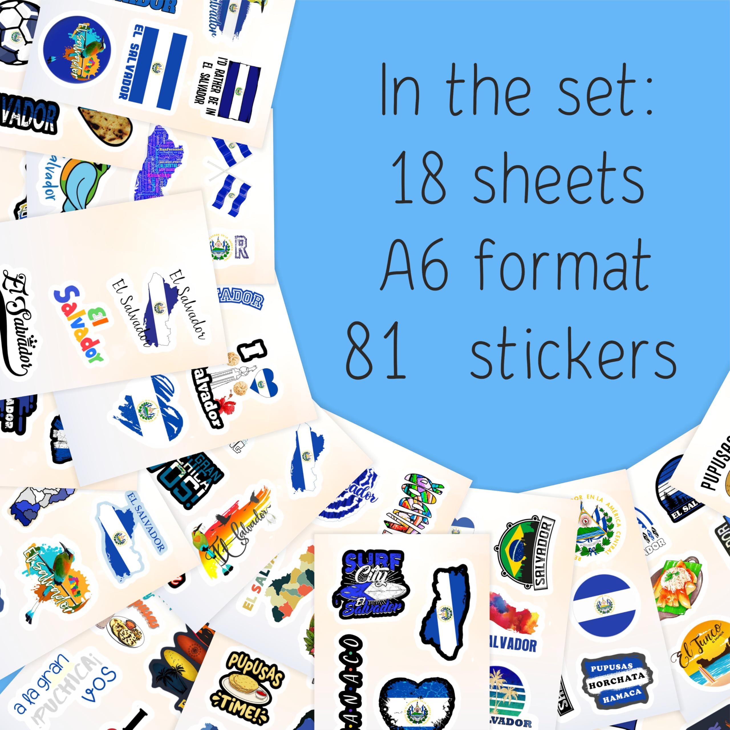 STICKER SHEETS - El Salvador sticker pack contains several sheets. Sticker sheets are less likely to get damaged or bent compared to loose, cut-out stickers.