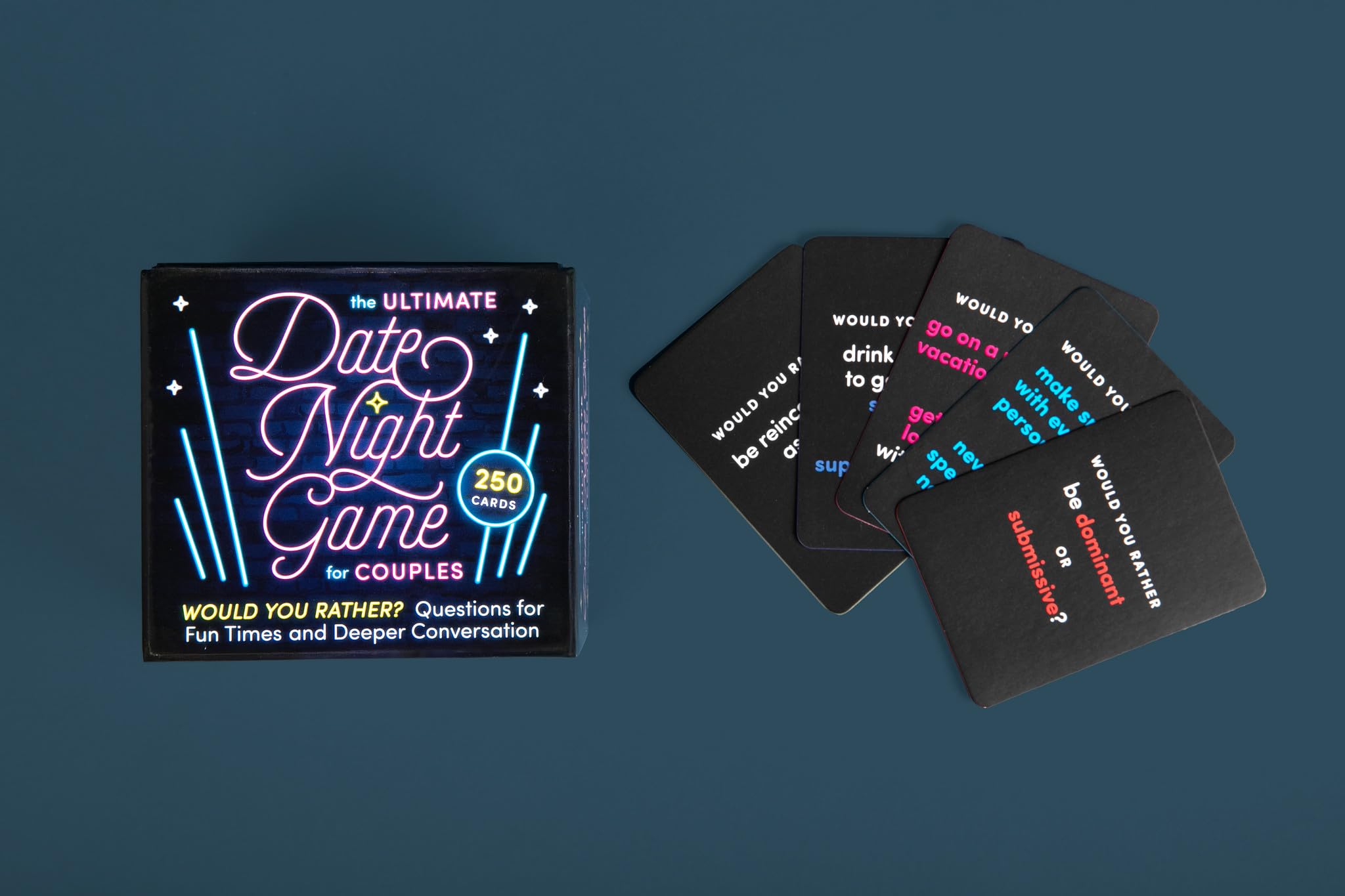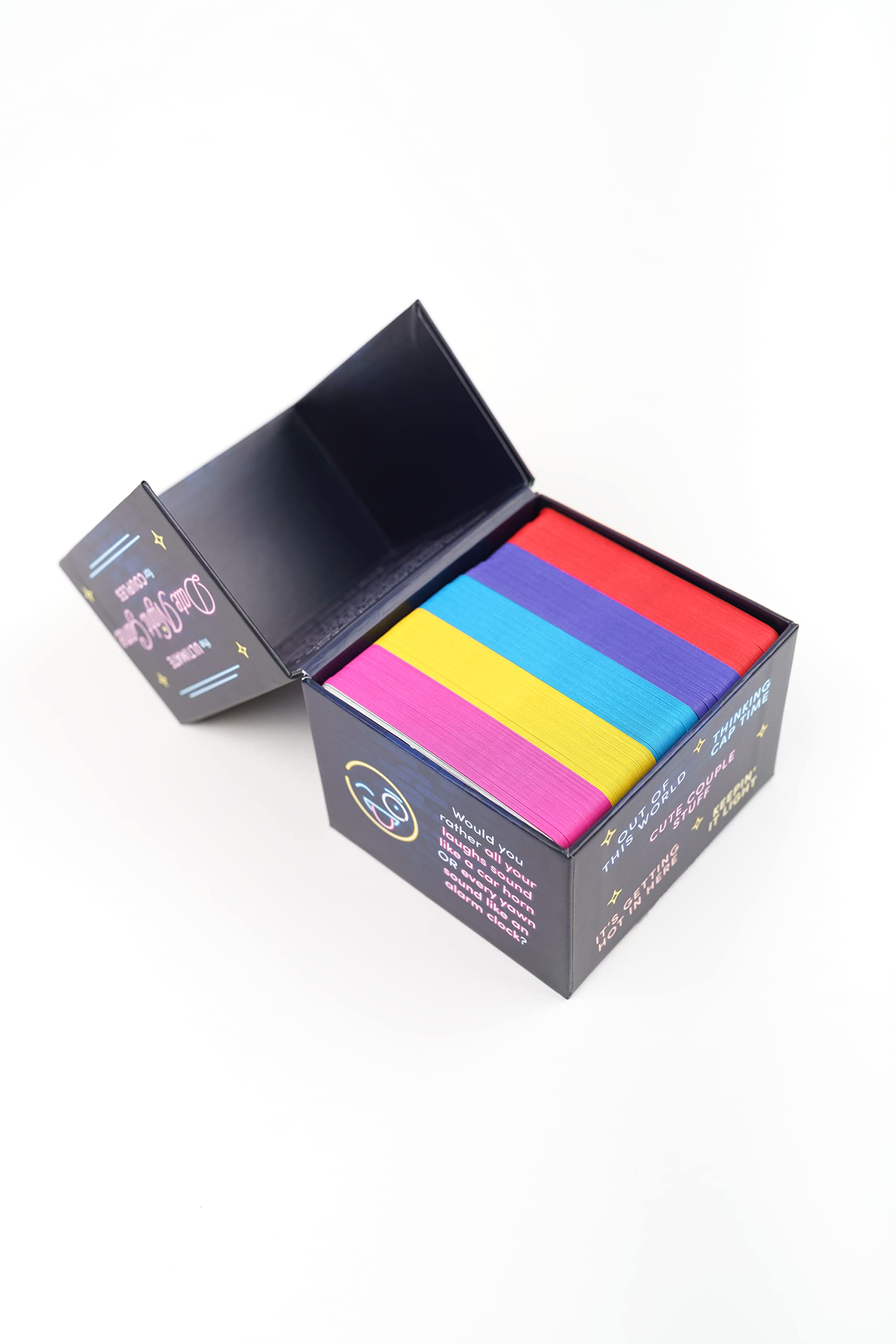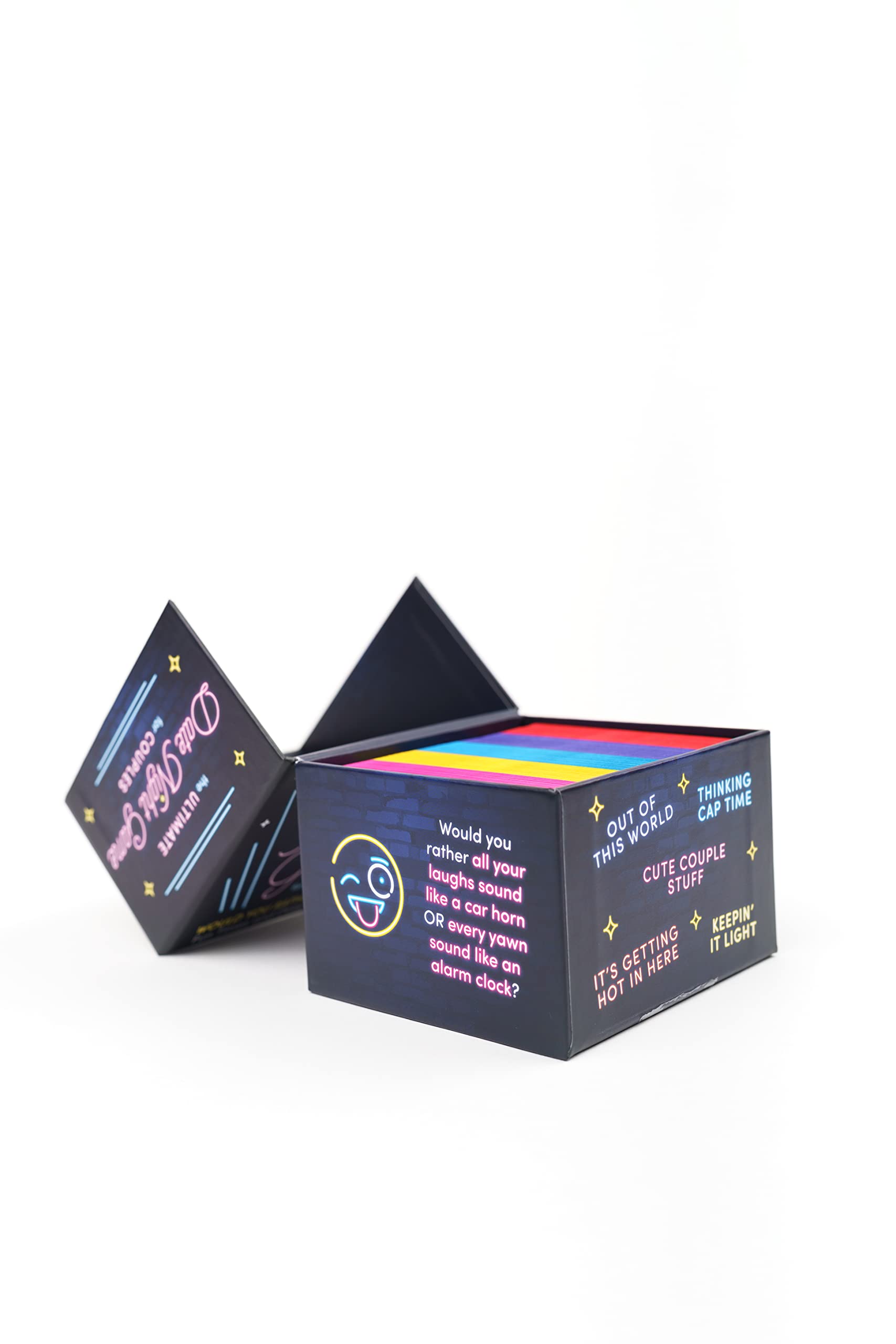 Would you rather stare at your phones all evening or play this fun card game for couples? Liven up any date night with 250 “Would You Rather?” questions that suit you and your partner’s mood—from frisky and silly to adventurous and philosophical! 200 CARDS + 50 BONUS SPICY CARDS set the tone for a fun, interactive date night ENJOY A DEEPER CONNECTION as you get to know your partner better through laughter and thoughtful conversations WIDE RANGE OF QUESTIONS via these categories:Cute Couple Stuff, Keepin’ It Light, Thinking Cap Time, Out of This World, and bonus section It’s Getting Hot in Here—designed for minimal drama and maximum fun! CHOOSE YOUR OWN ADVENTURE with four easy and different ways to play the game, ranging from lighthearted fun to, well . . . remember that spicy category we mentioned? STURDY, SLEEK PACKAGING makes this a great game to pack on vacation or slip into your bag for an after-work date AN IDEAL COUPLE’S GIFT for couples at any stage in their relationship, from the newly engaged and newlyweds to couples in their first year celebrating anniversaries and Valentine’s Day