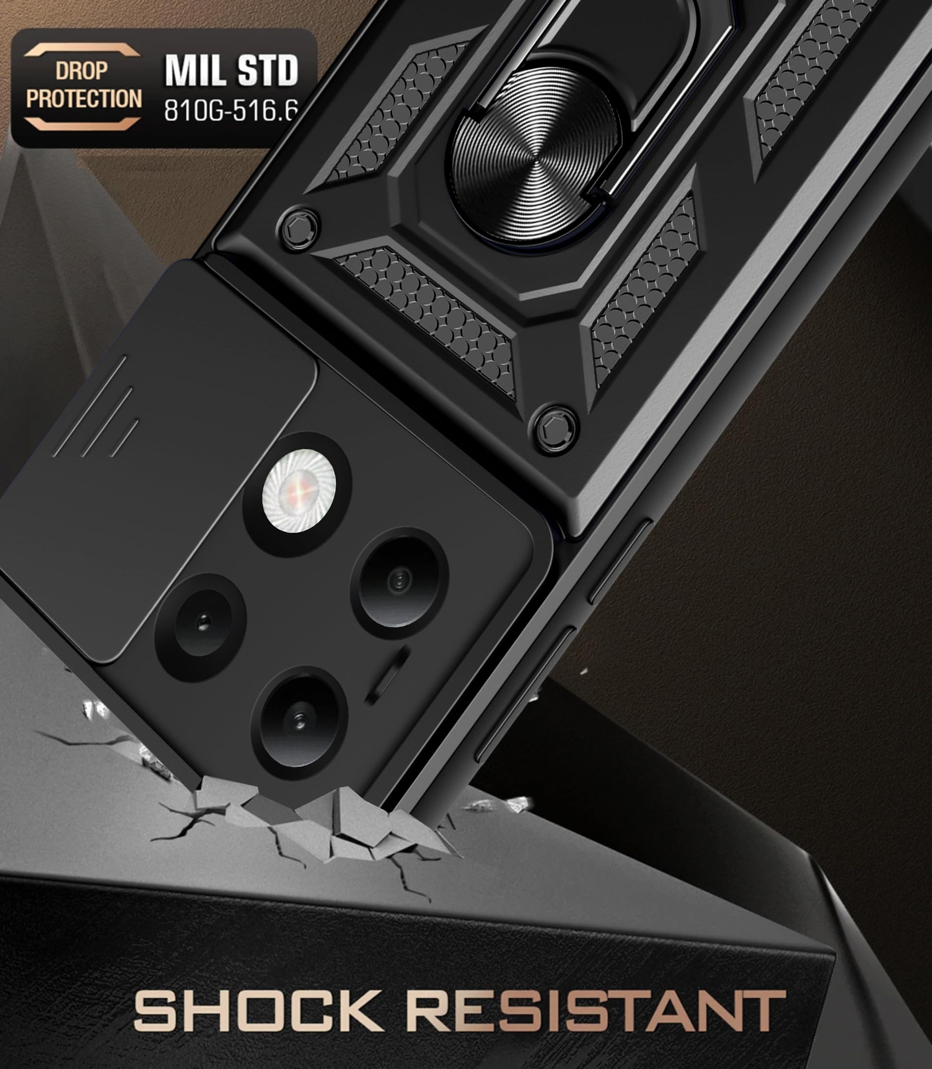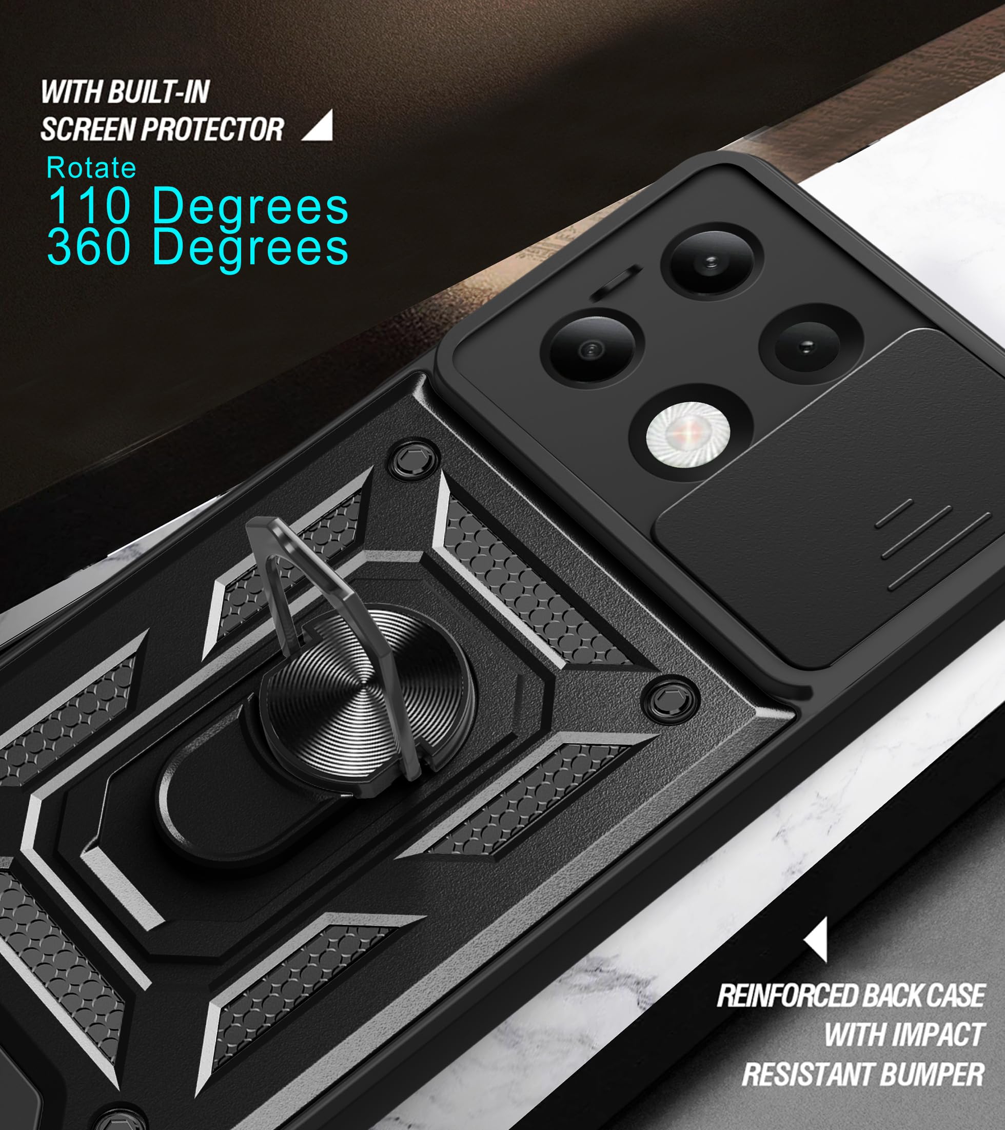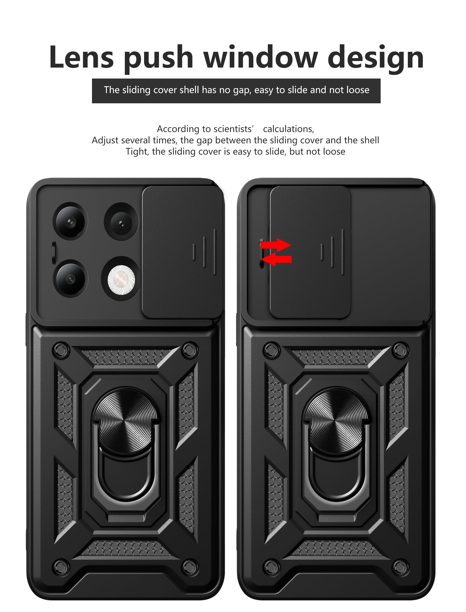 【Cameras Protection】The Unique Lens Cover function is Slide cover designs for protecting and cover the camera perfectly. Anti-hacking voyeur, preventing from the disclosure of our privacy. Adding a fastener to make the cover tight when you close it. With our Xiaomi redmi Note 13 4G protective phone case, no longer needed glass camera protector.