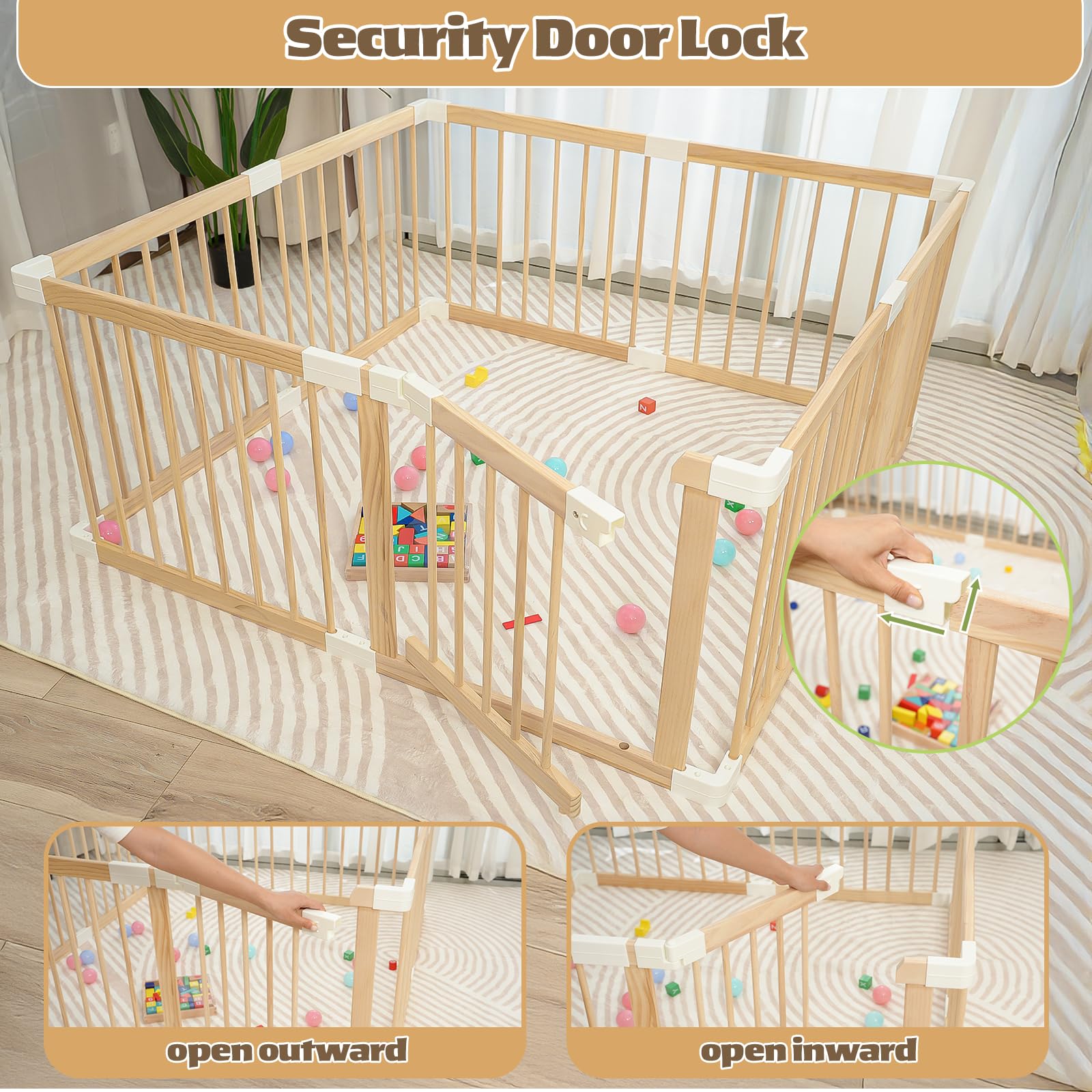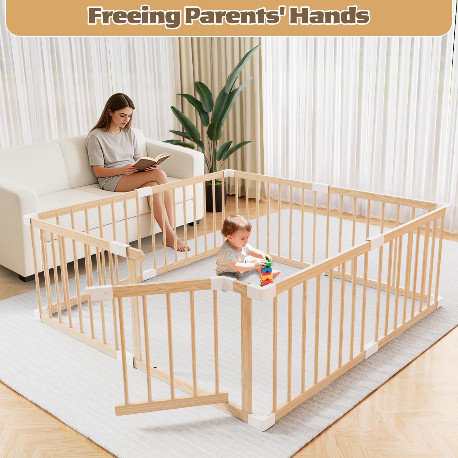 Quality materials:Play pen for babies 6-12 months, strictly selected New Zealand pine, the wood is hard and resistant to deformation, the surface is finely polished, no chemical coating, baby play pena wet cloth can be gently wiped to complete the cleaning, baby play pen high-quality connectors, strong and durable, more peace of mind.