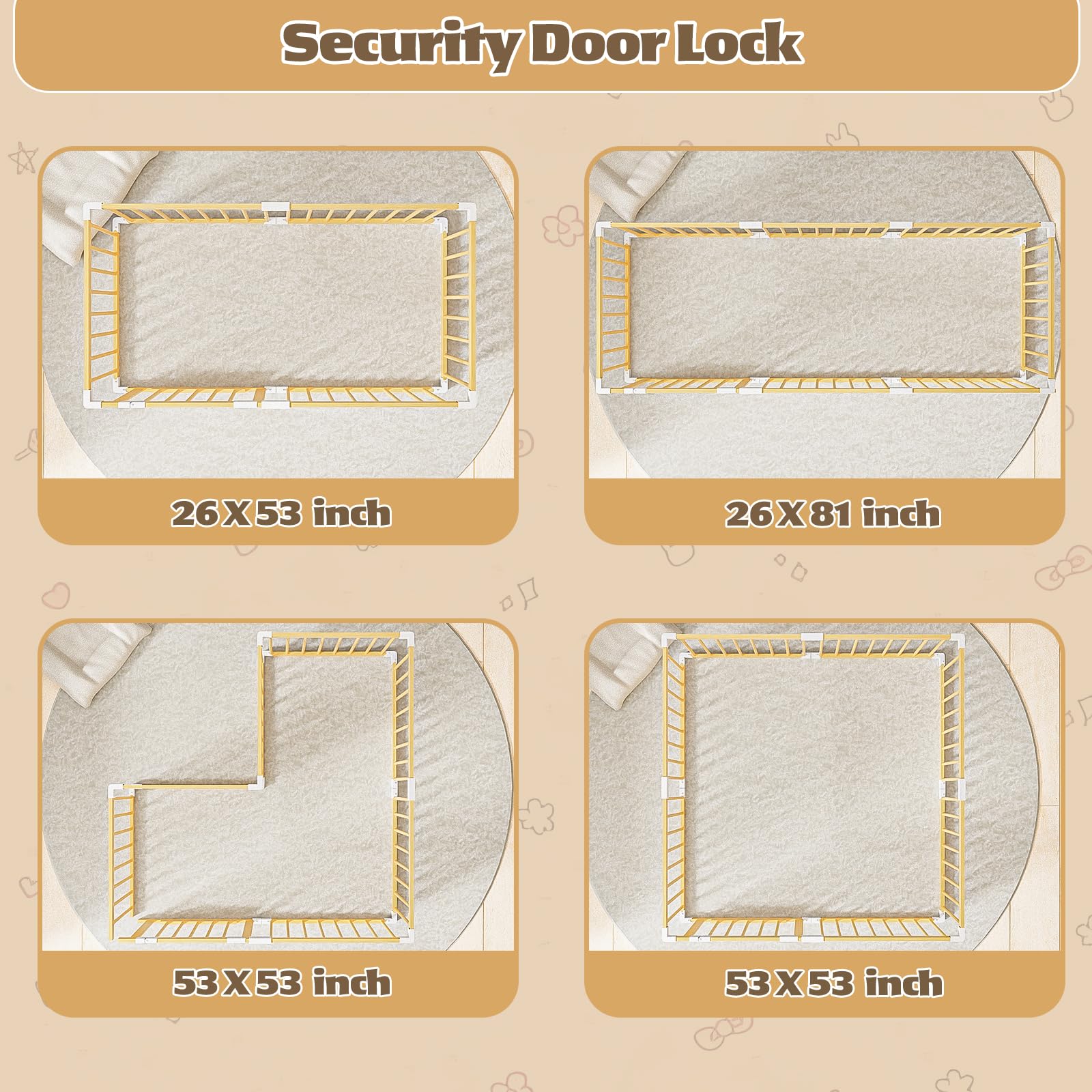 safety protection:The large baby playpen is equipped with triple safety locks to prevent babies from accidentally opening the playpens, 24 inches in height to prevent overtopping, 2.6 inches in scientific rail spacing to prevent snagging hands and feet, with anti-slip pads to enhance stability, all-around guarding the safety of babies.
