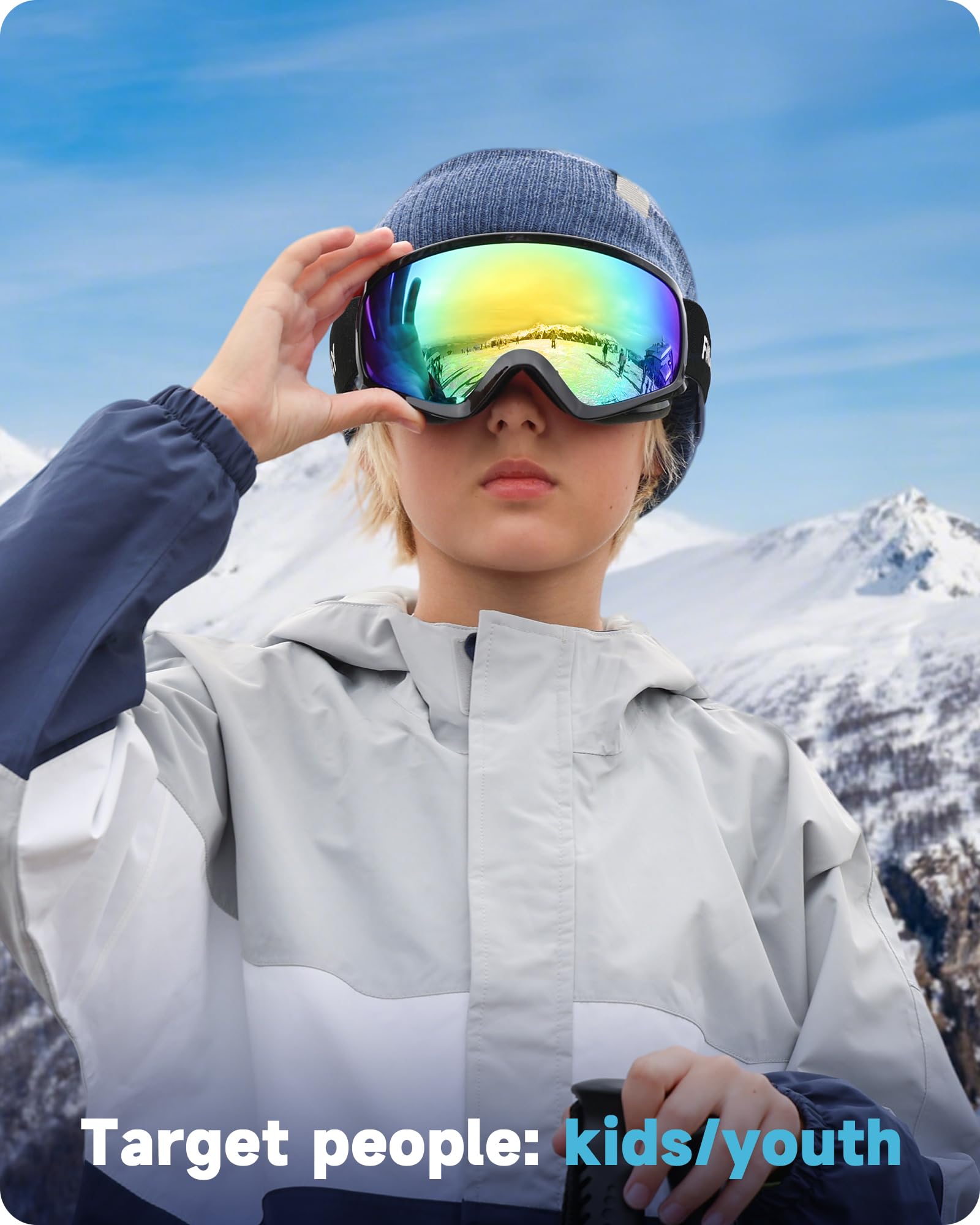【Customer Oriented Service:】These ski goggles are designed for kids age 5~16, and there are many more kids (3~8 years old) and youth adult ski goggles to offer your choices in our Findway Store. In addition,if you meet problem in using our ski goggles,please feel free to email us, we provide 24/7/365 kindly service.